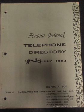 Green Paper Benicia Arsenal Telephone Directory July 1954