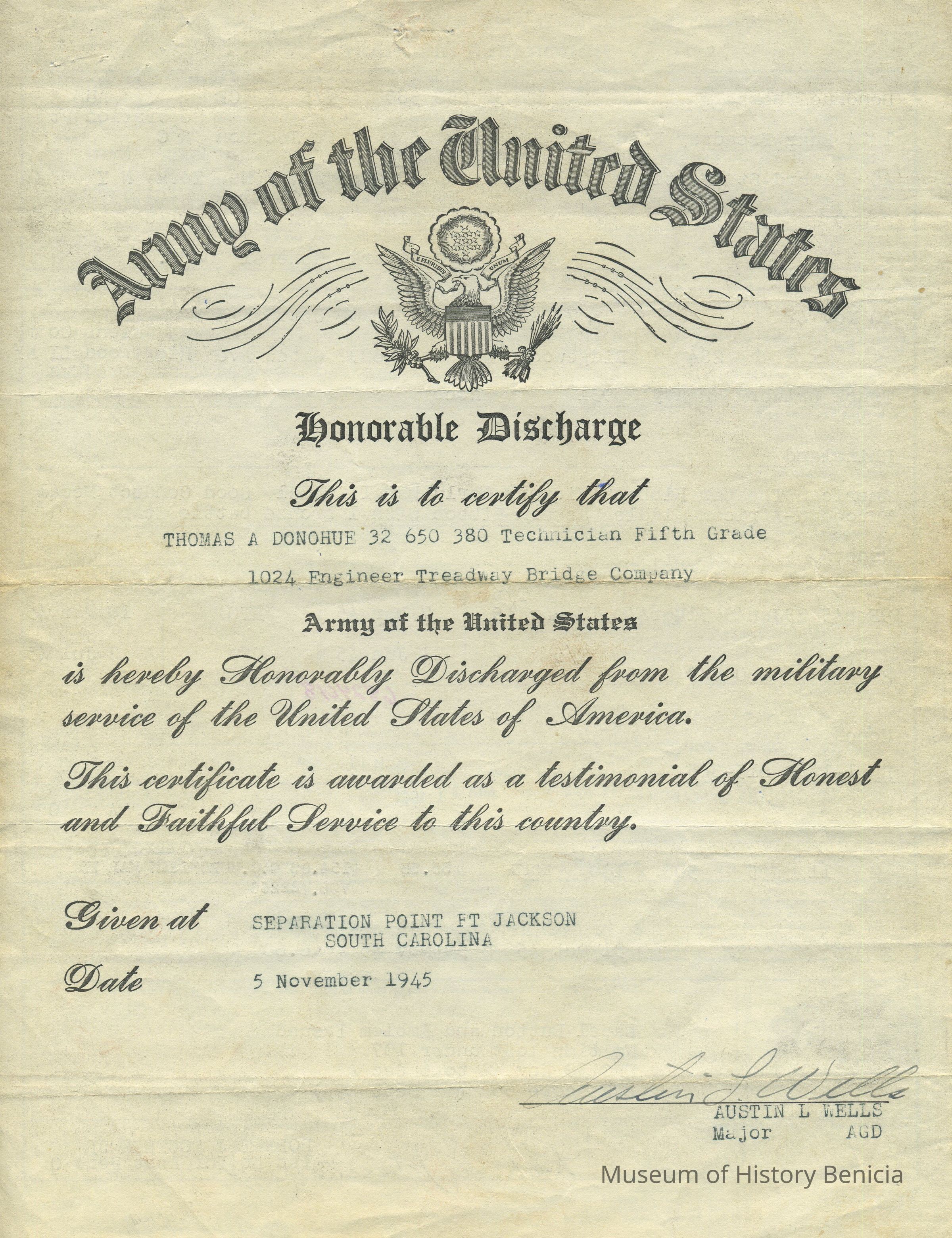 Form - U.S. Army Discharge Certificate