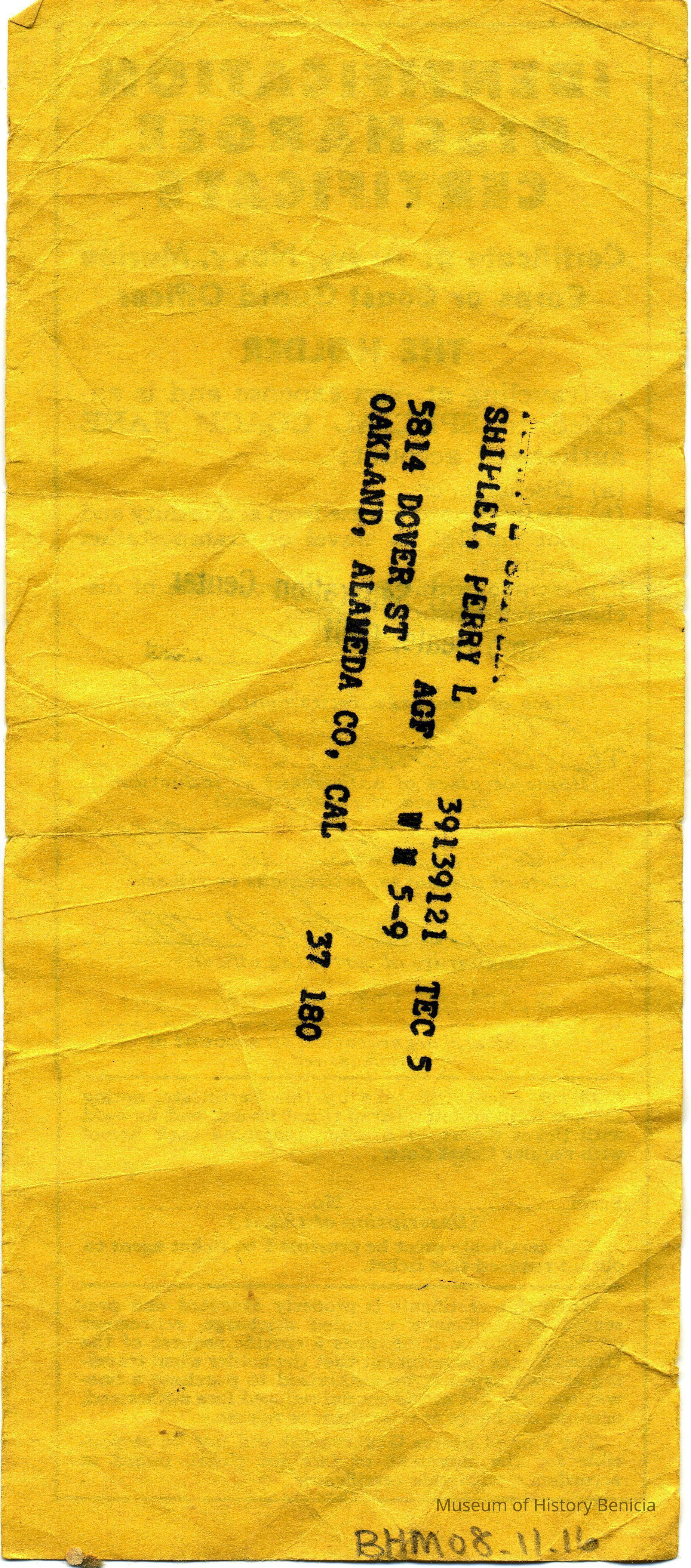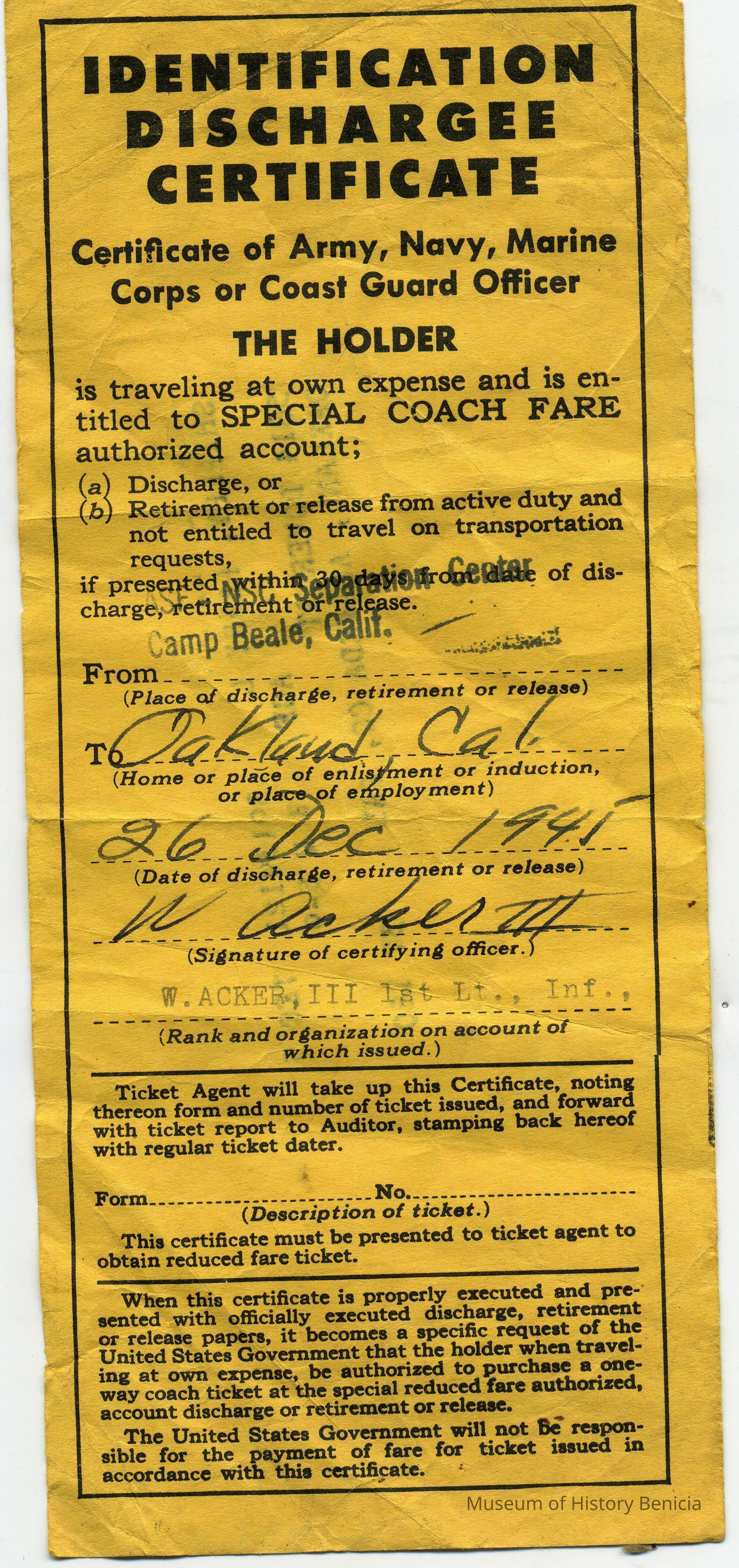 Identification discharge certificate. This is a certificate of Army, Navy, Marine Corps or Coast Guard.