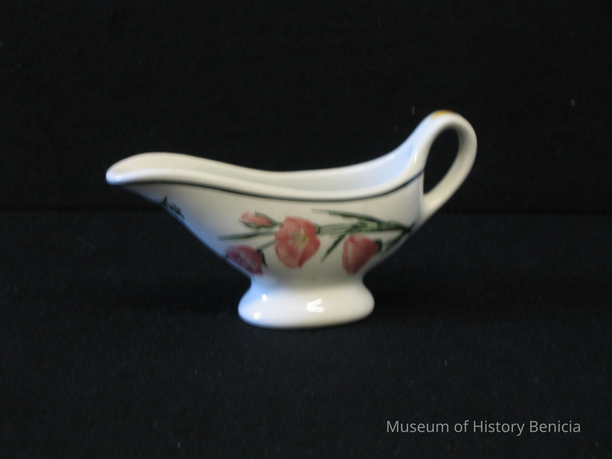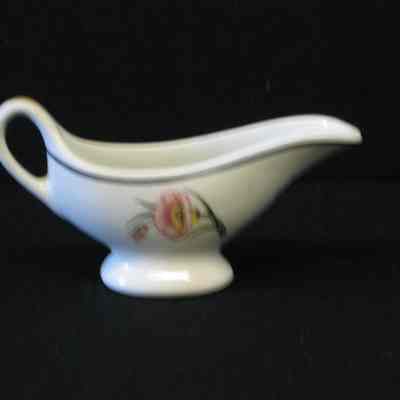 Prairie Mountain Wildflowers made expressly for Southern Pacific Lines dining car service. Gravy boat with three flowers on it.