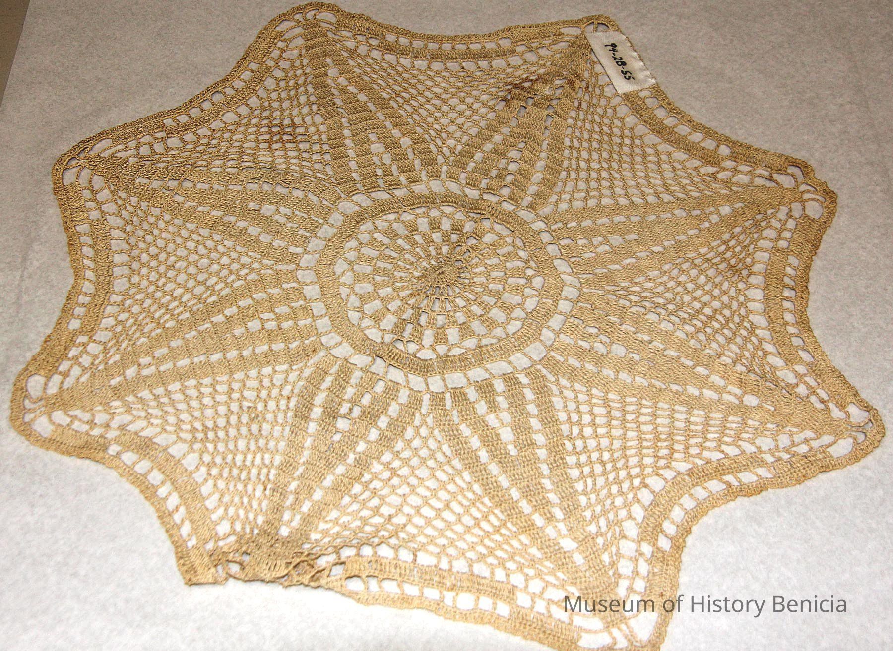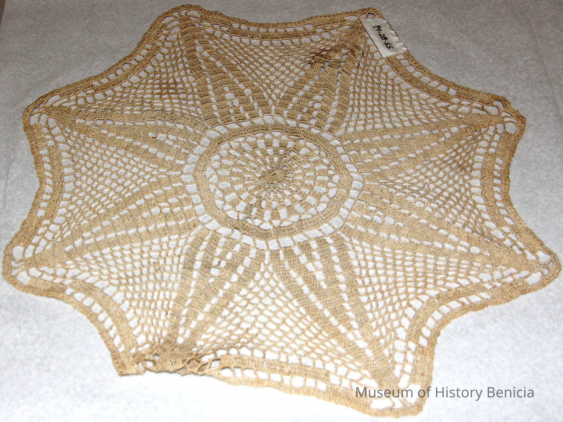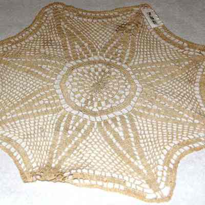 Crochet doiliy star shaped. from catalog sheet 7/27/94: chrocheted doily with eight-pointed star, color ecru, cotton/rayon