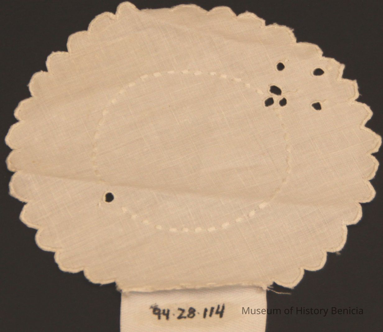 Round white scalloped edged eyelet and embrodery design - satin stitch edging - doily