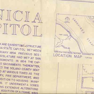 Drawings of the Benicia State Capitol Building made by the Historic American Building Survey during its survey of Benicia Arsenal Buildings. Shows the floor plans and elevations. Five sheets in group.