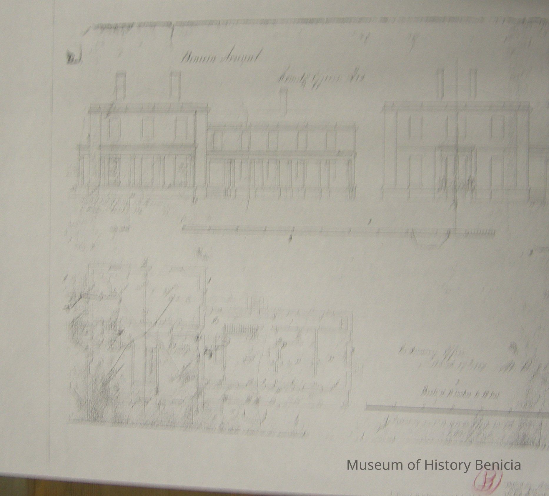 Copy of the original 1859 drawings for the Benicia Arsenal Commandant's Residence built in 1860. The drawings are from the National Archieves.