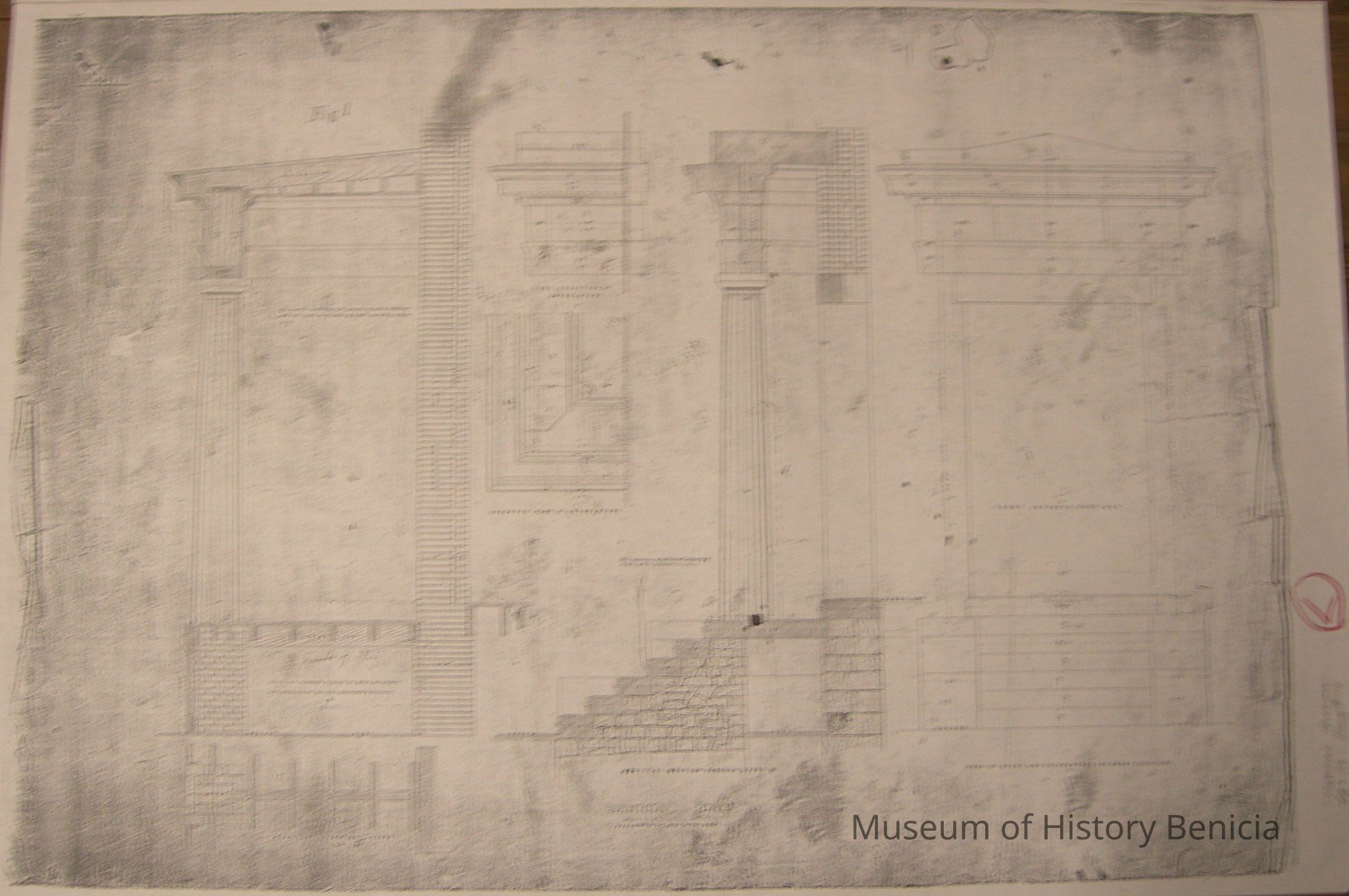 Copy of the original 1859 drawings for the Benicia Arsenal Commandant's Residence built in 1860. The drawings are from the National Archieves.