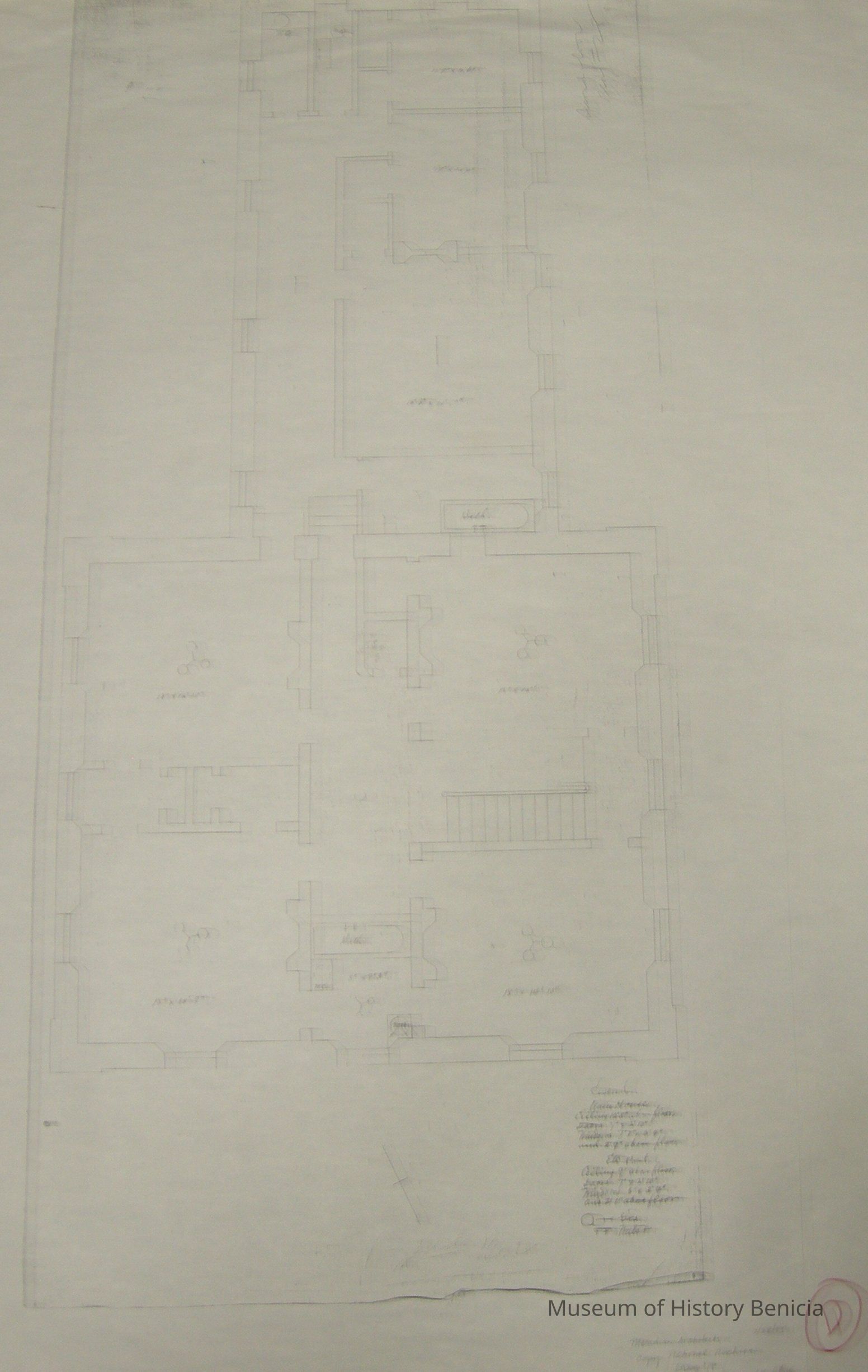 Copy of the original 1859 drawings for the Benicia Arsenal Commandant's Residence built in 1860. The drawings are from the National Archieves.