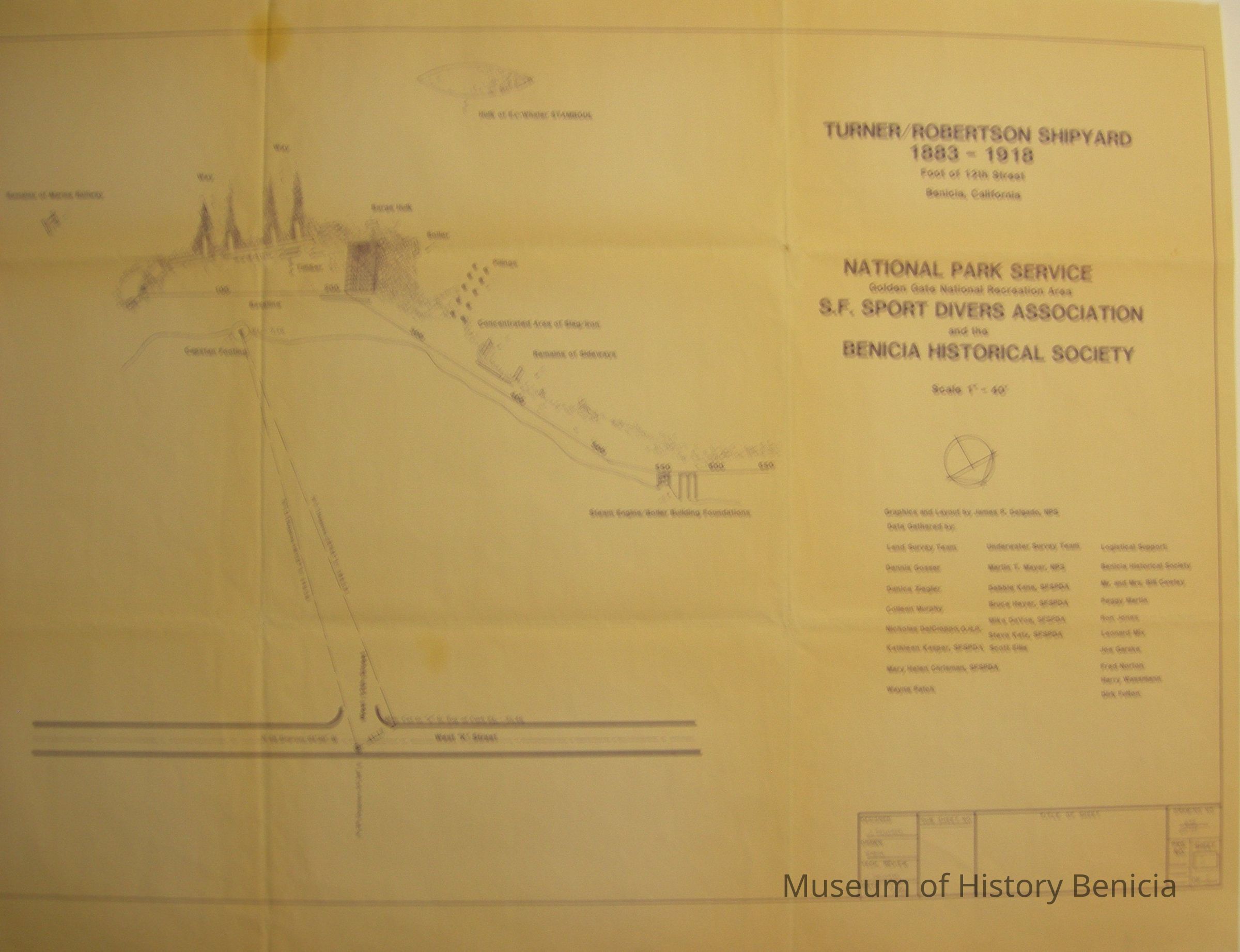 Blueprint of drawing of "Turner/Robertson Shipyard / 1883-1918 / National Park Service and Benicia Historical Society" Sept. 1986