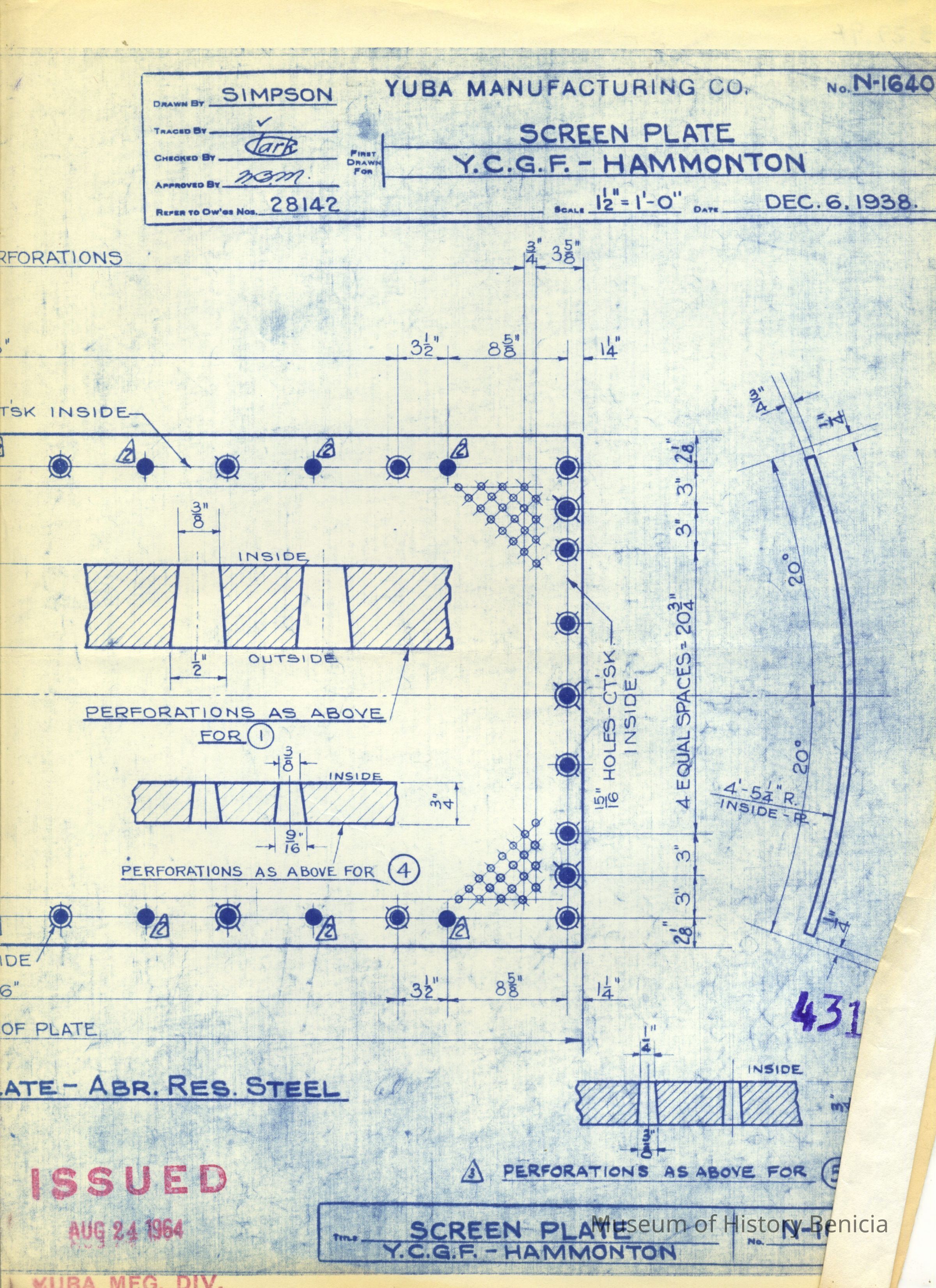 Drawing for a screen plate for dredge.