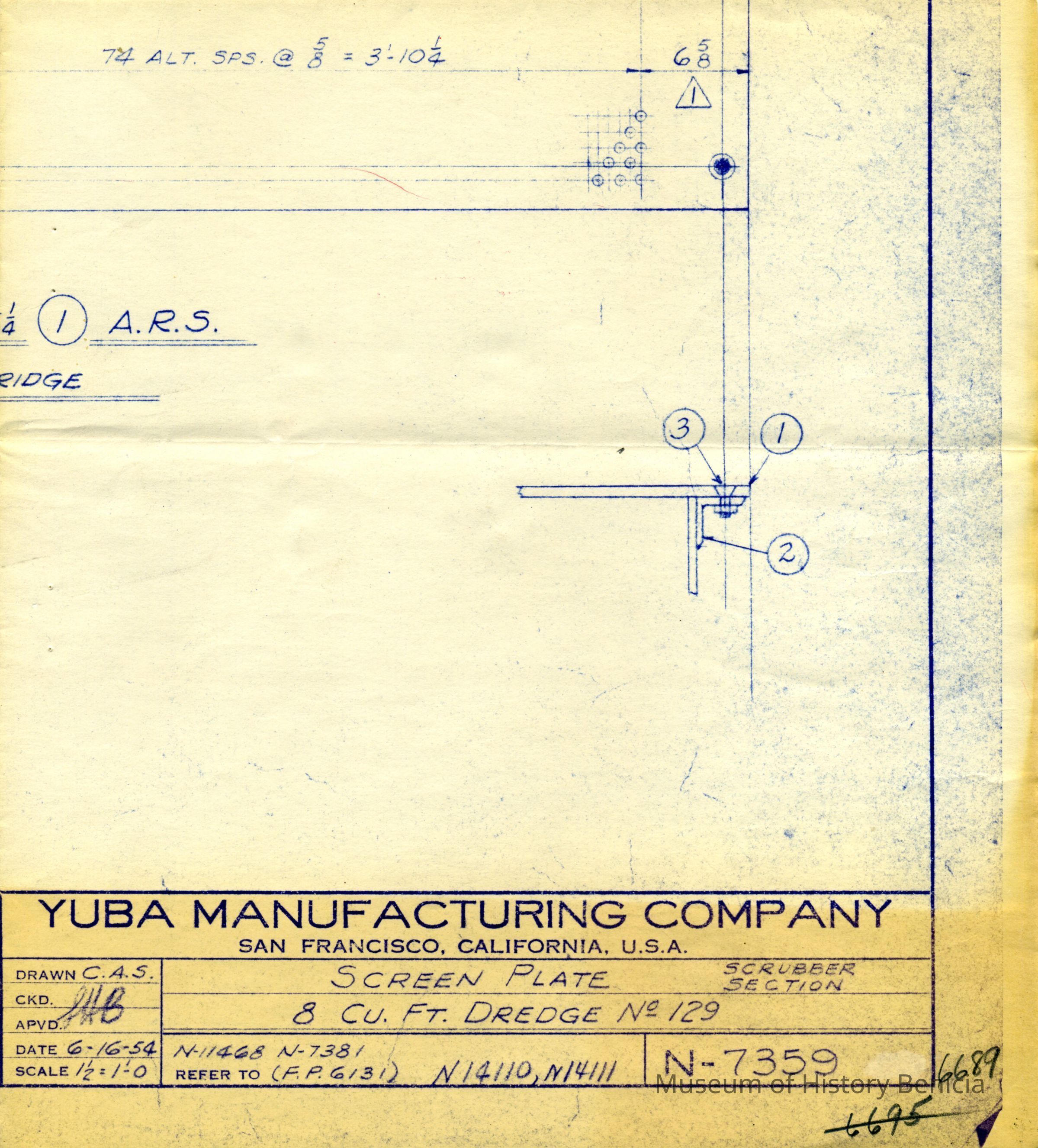 Drawing for screen plate for dredge # 129