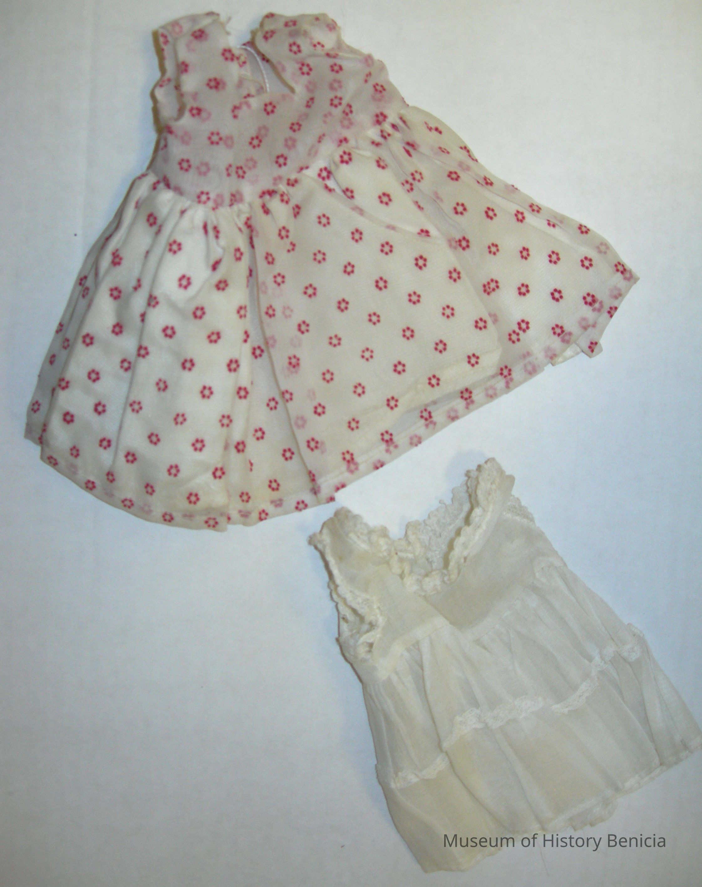 BHM2009.030.0031a - dress, sheer dotted swiss (red flower design, skirt is lined in sateen, snaps at back, sleeveless, square neck