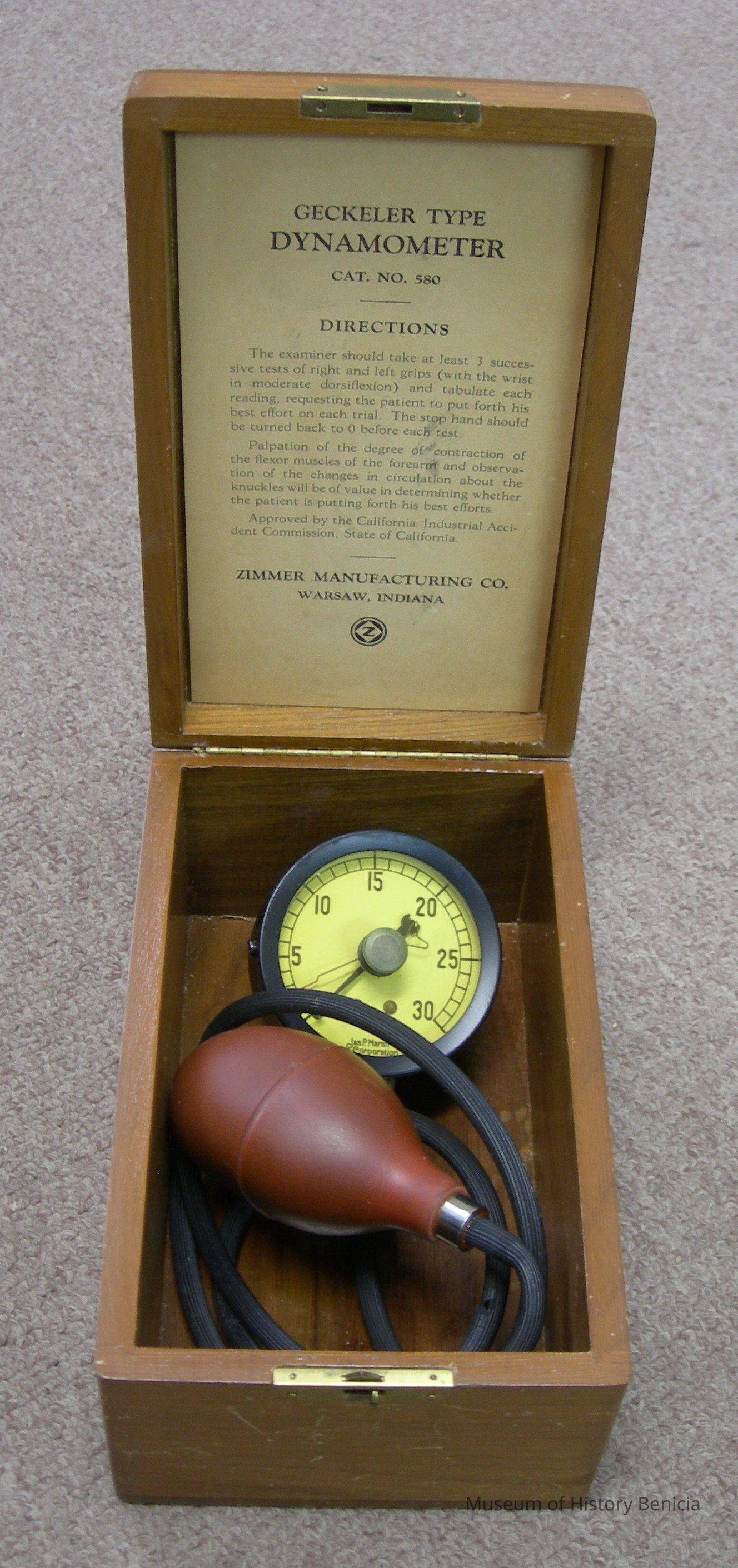 Directions: The examiner should take at least 3 successive tests of right and left grips (with the wrist in moderate dorsiflexion) and tabulate each reading, requesting the patient to put forth his best effort on each trial. The stop hand should be turned back to 0 before each test.