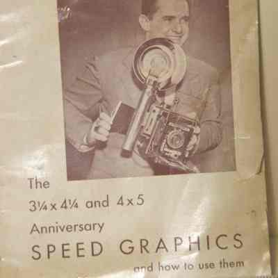 Instruction booklet for Graflex Speed Graflex 4x5 camera model "A". Serial #359546 has an optar lens F 4.7 (135 mm #464164. "The 31/4 X 4 1/4 and 4X5 Anniversary Speed Graphics How to Use Them.Collection
