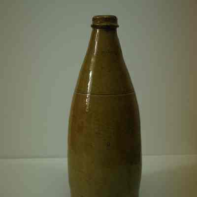 Ceramic bottle, glazed inside and out. Stamped "Refined Cider" at base. Possibly dug up from Benicia's bottle Hill.