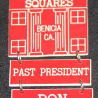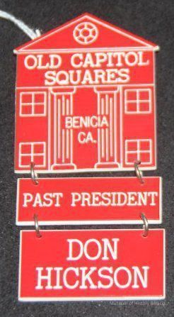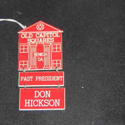Red and white Old Capitol Squares Badge that reads "Past President Don Hickson"