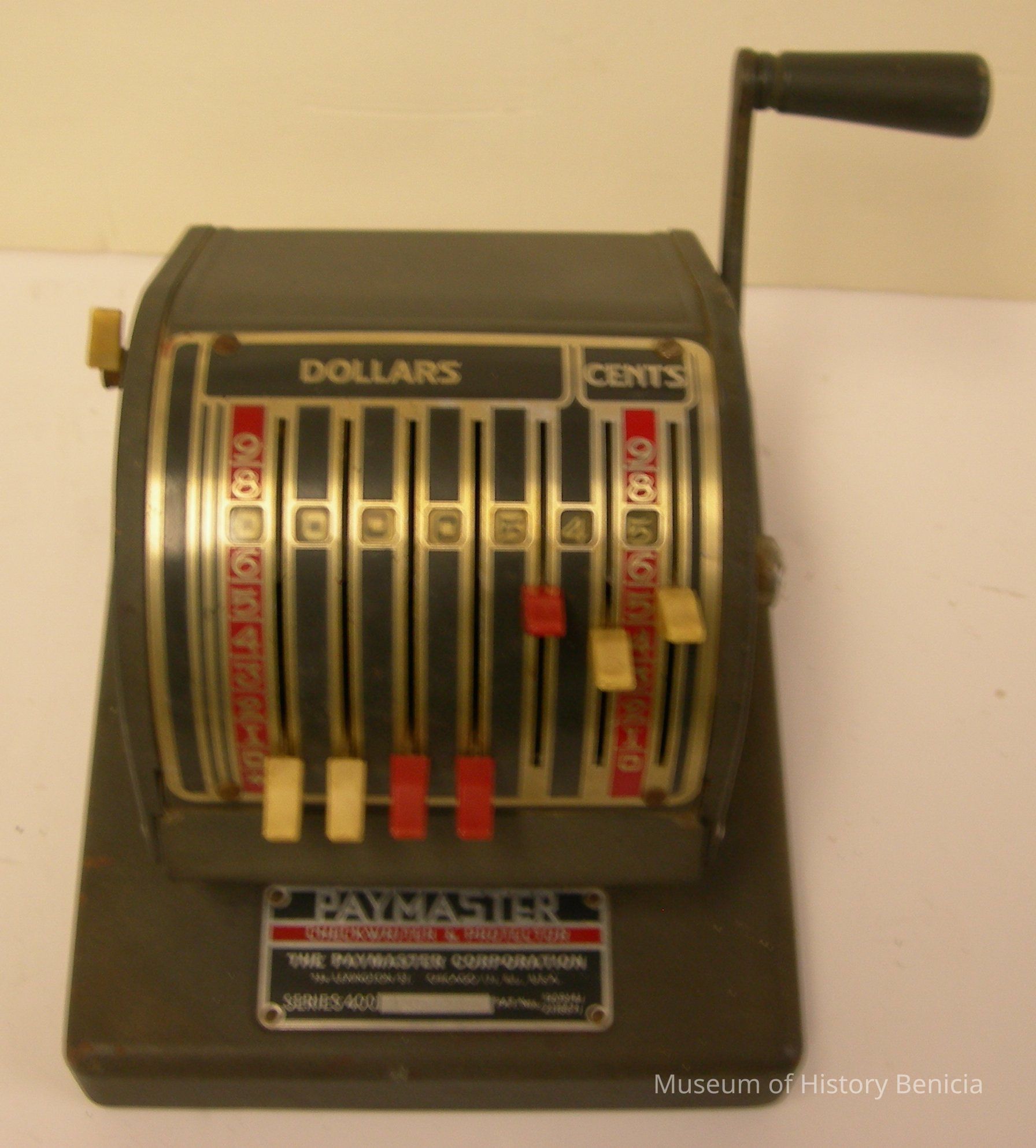 dark gray, manual lever, nine levers total, "Paymaster" in silver