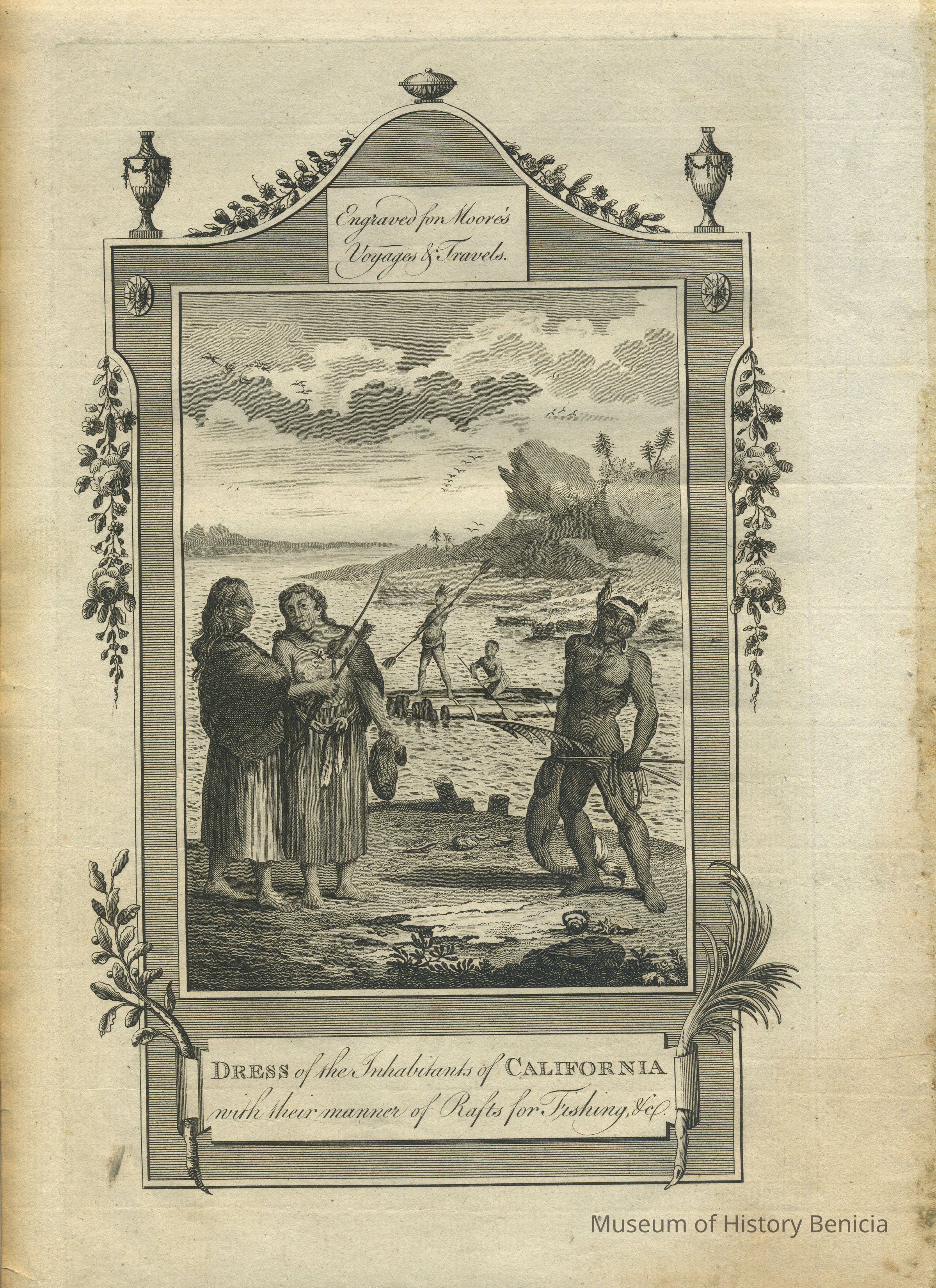 Title: Dress of the Inhabitants of California with their manner of Rafts for Fishing.