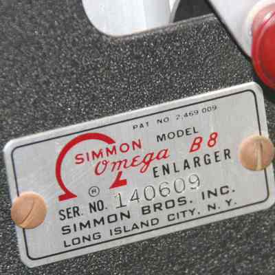Simon Omega model B8 photgraphic enlarger. Serial Number 140609. Has 2 lenses, negative carrier and misc parts.