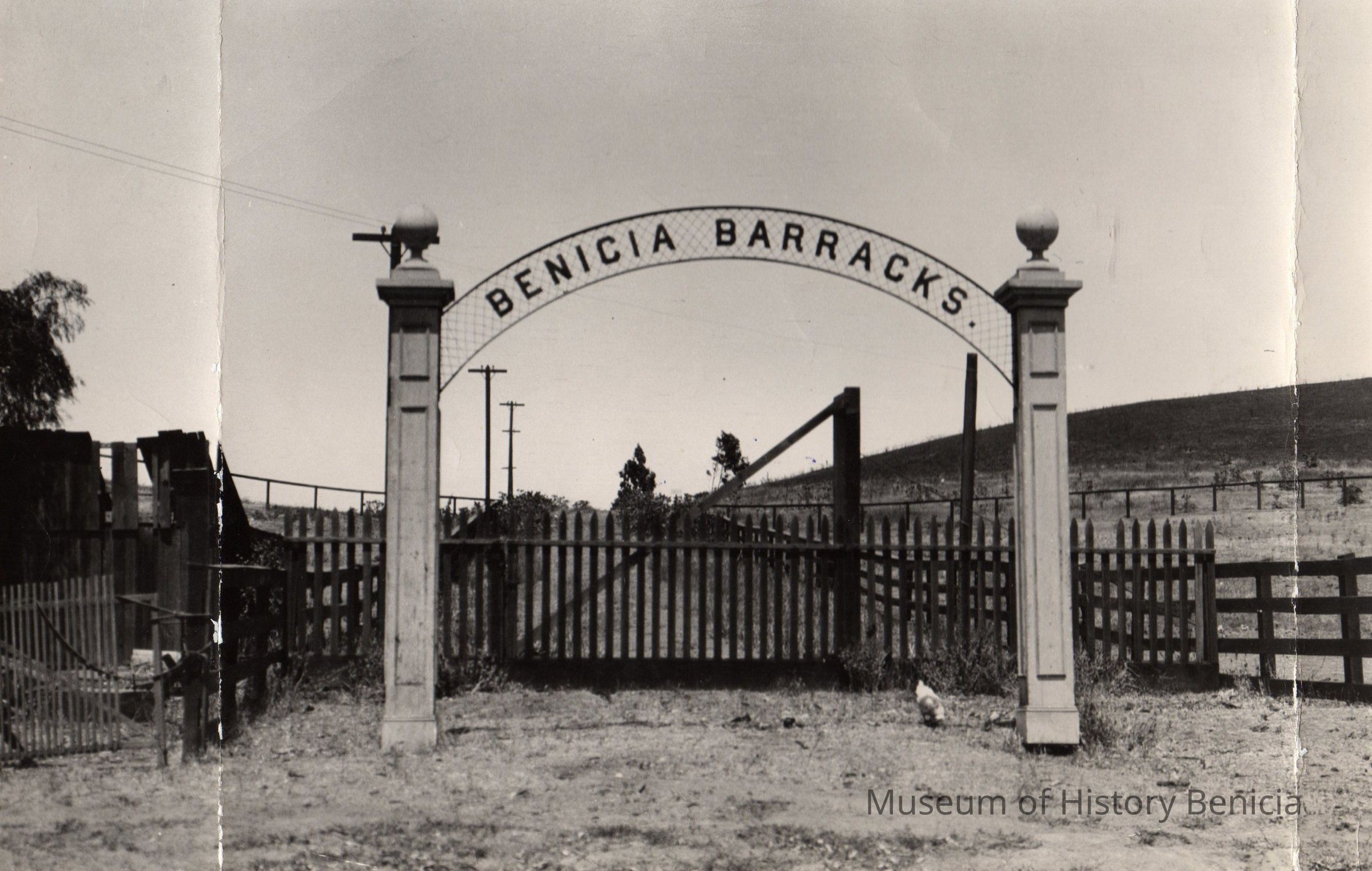 Old abandoned entrance to the Benicia Barracks. B/W photo.