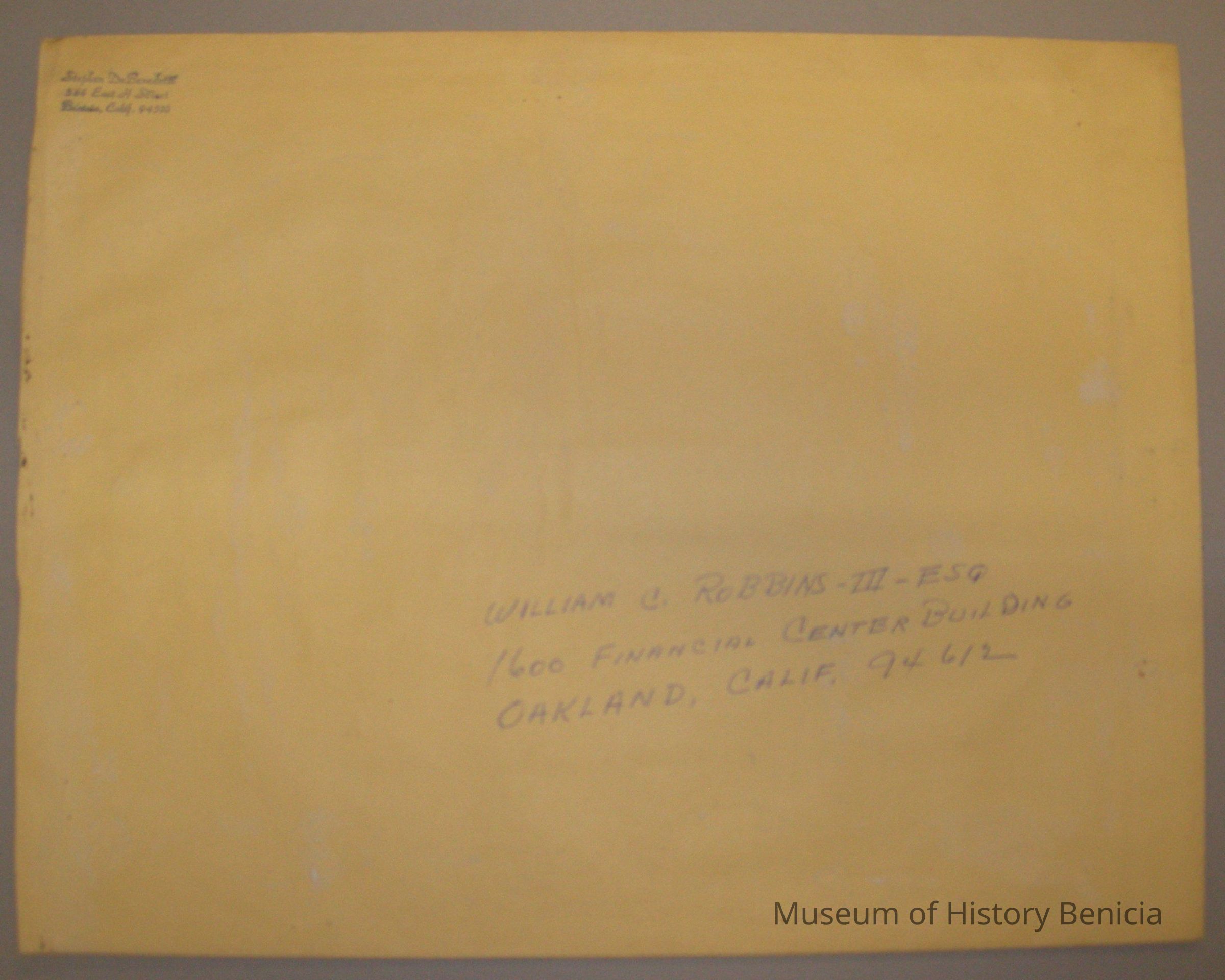 manila envelope addressed to William C. Robbins III Esq. in Oakland but was not mailed,