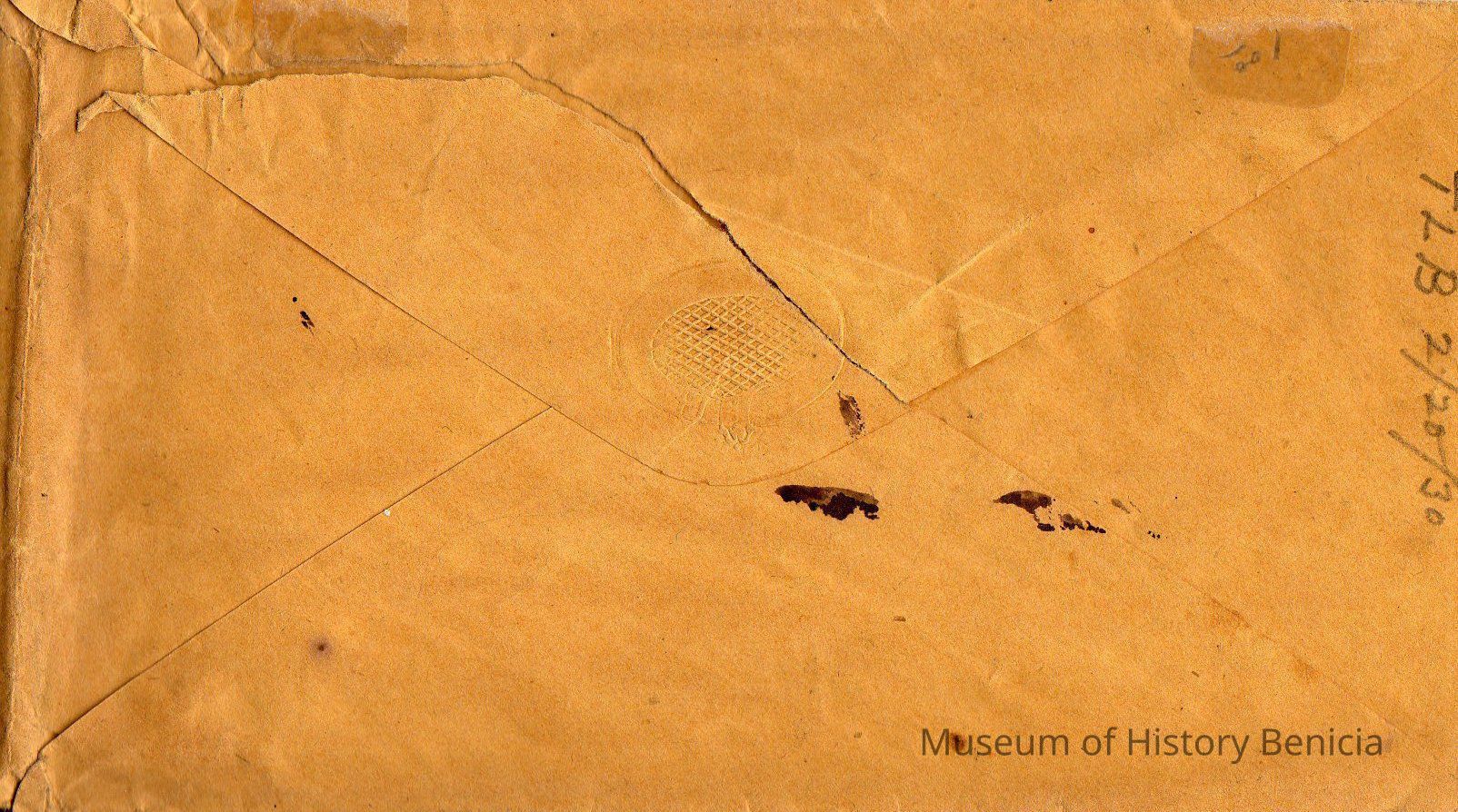 Envelope addressed to Honorable [?] W. Mandeville, in Assemble, Sacramento (Benicia is scratched out) Cal. Postmarked Greene, N. Y. February 15 & Postmarked Benicia, Ca March 22, c. 1854.Collection