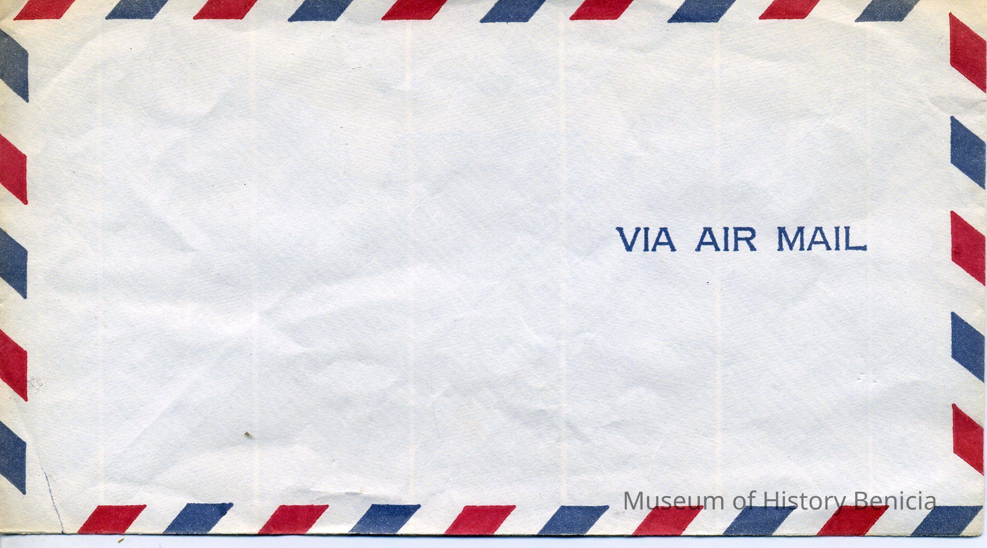 Envelope - red/white/blue border all-around "via air mail" printed on front under sport where stamps go unused