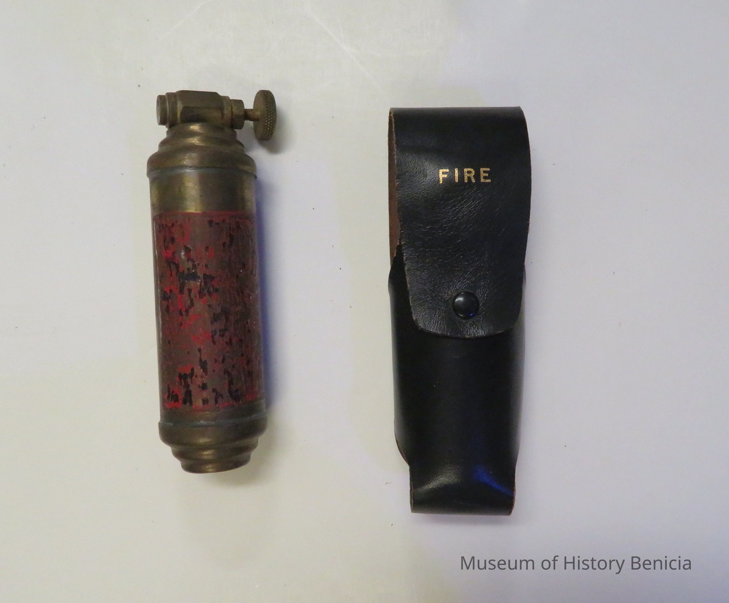 Black top grain cowhide case. "Fire" printed on front where it snaps.