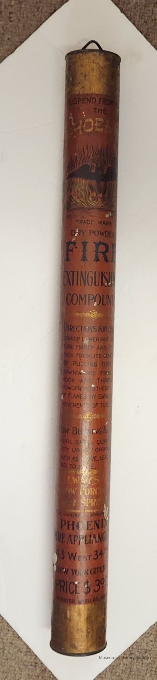 label: Suspend from hook / The Phoenix / [bird logo] / Dry Powder Fire Extinguishing Compound (includes instructions) /