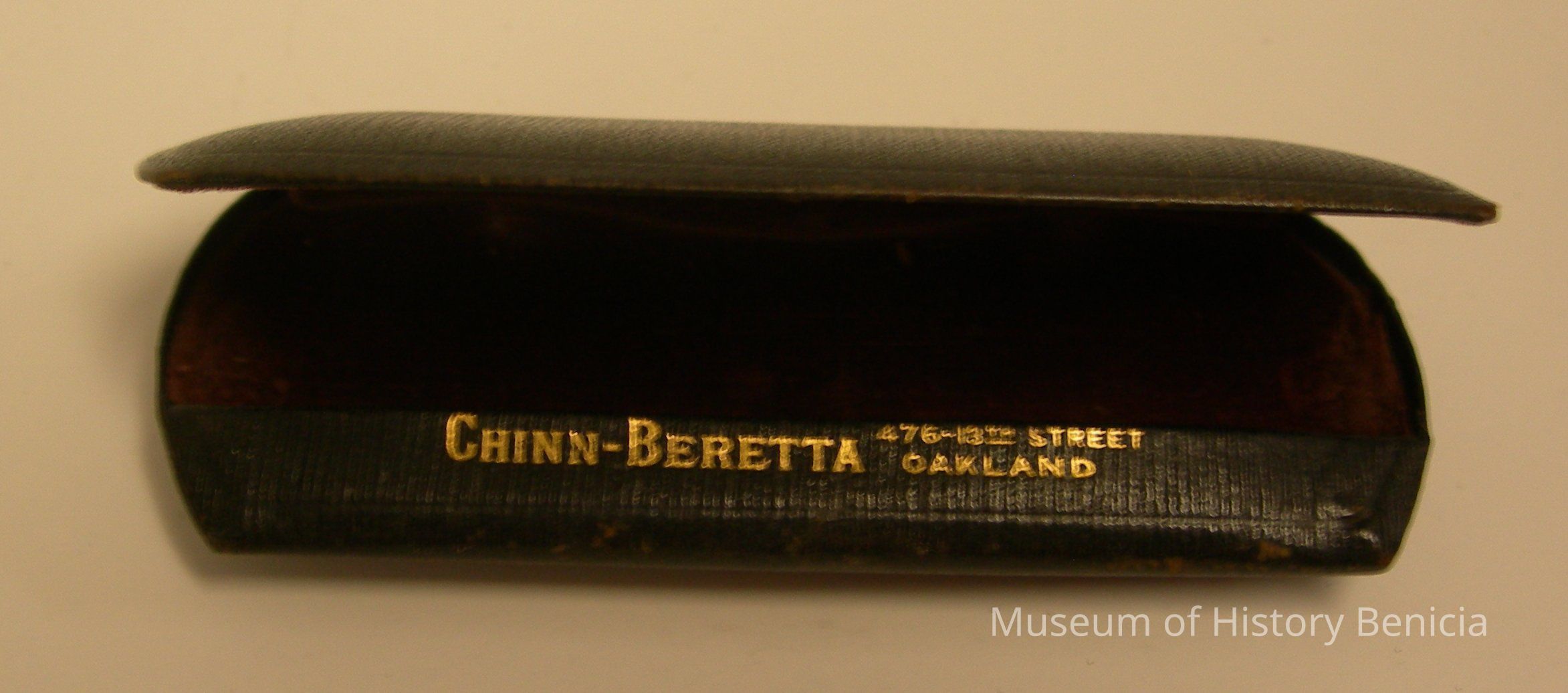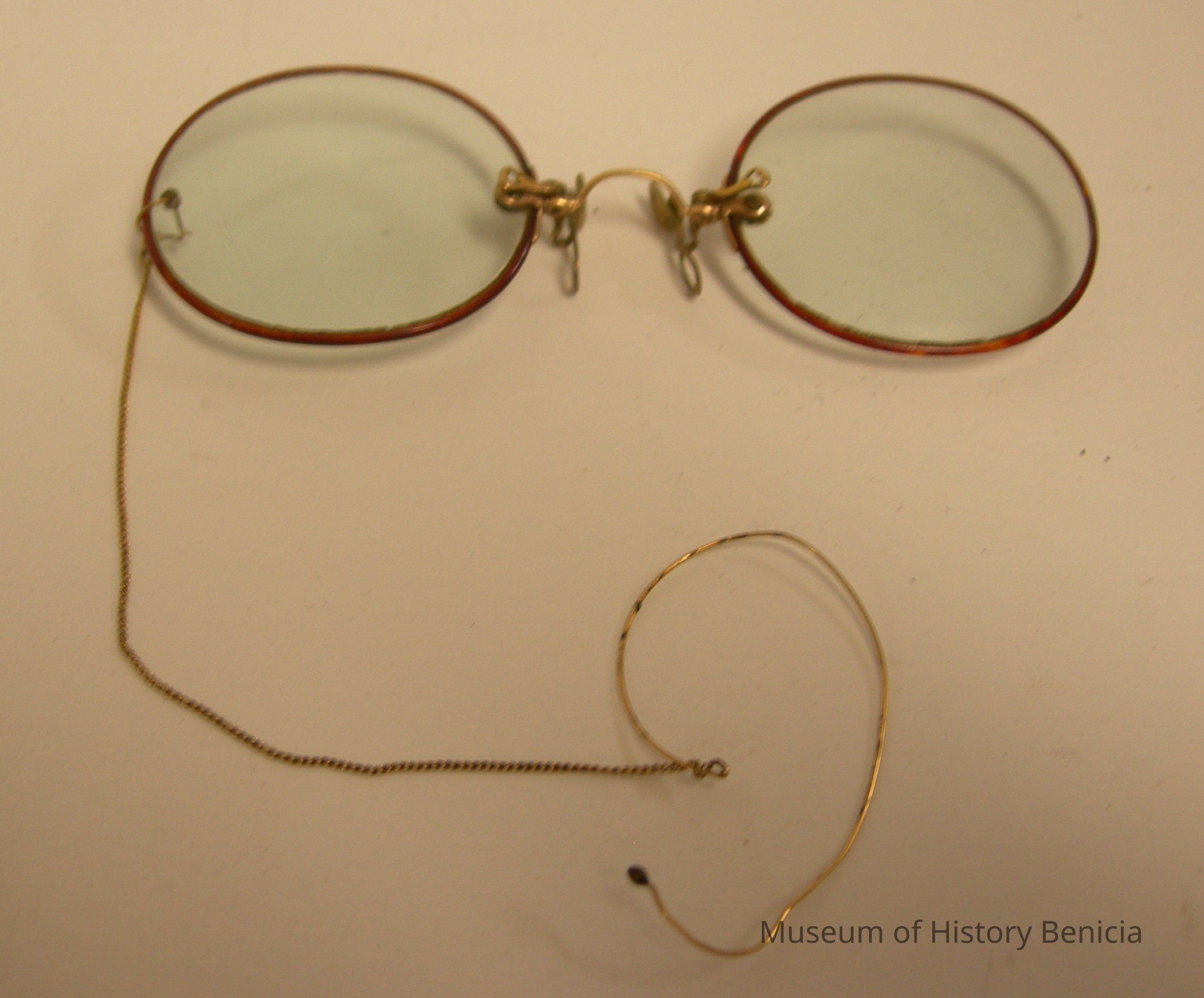 Eyeglasses with black case belonging to William Crooks mayor of Benicia for 32 years.
