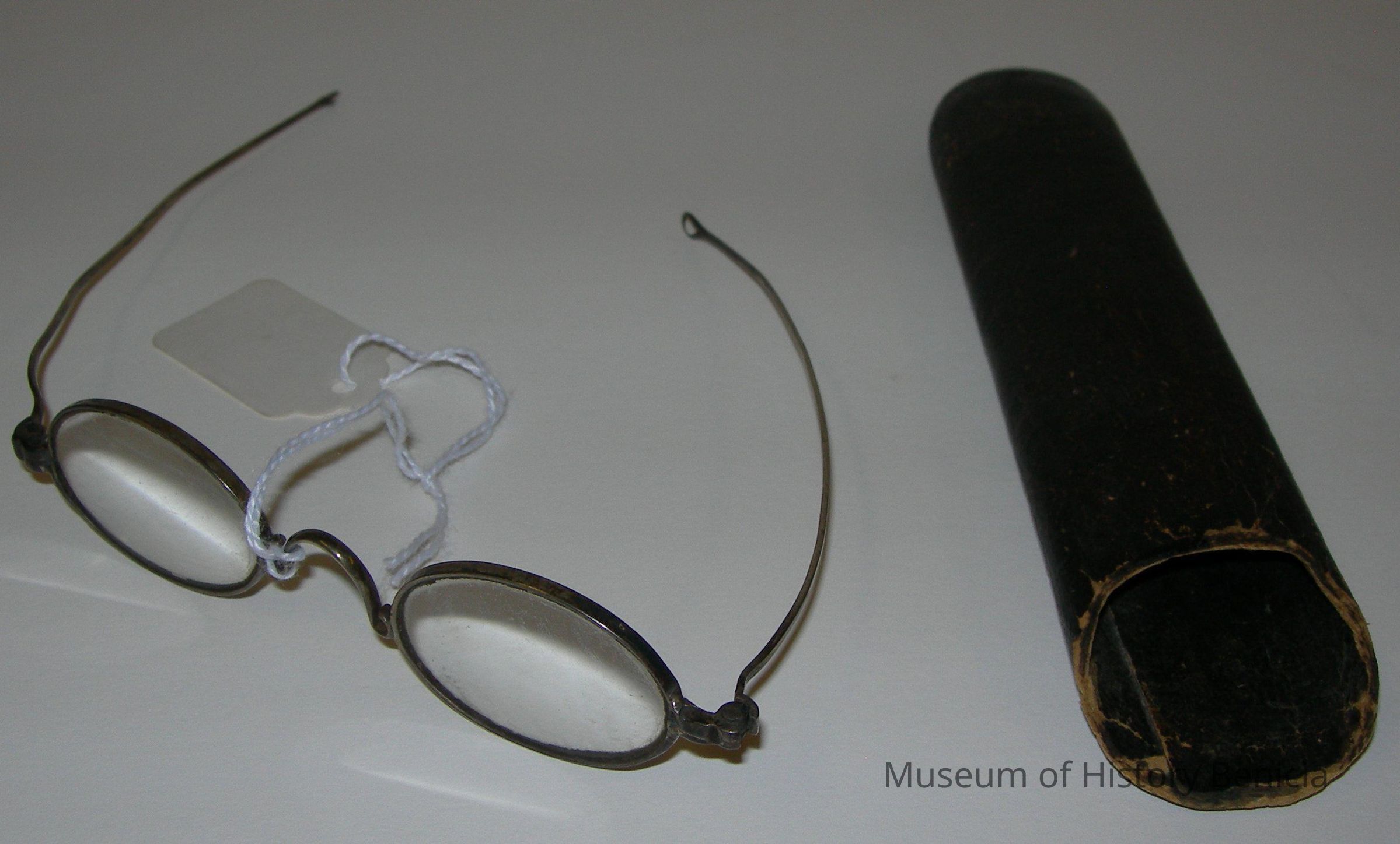 Old eyeglasses with case. Passed down from Dr. Philip Fry BHM2007.035.0001a - glass case