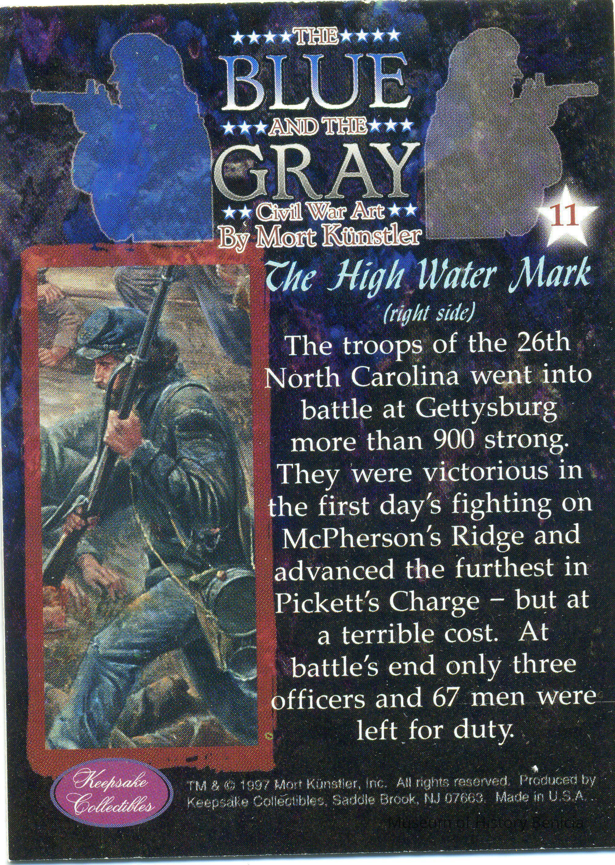 This card (#11) is called "The High Water Mark (right side)". It talks about the battle at Gettysburg and the 26th North Carolina. There is only one copy of this card.Collection