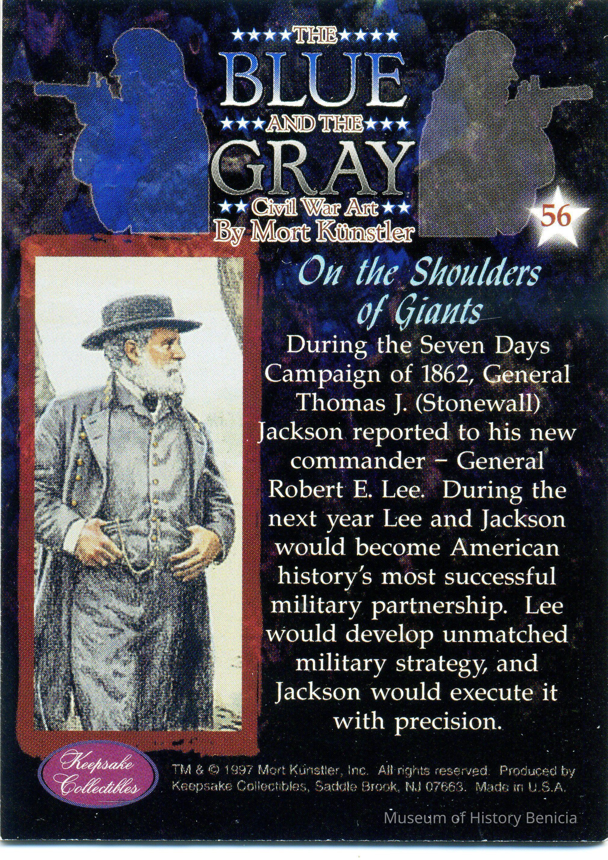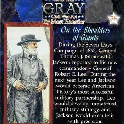This card (#56) is called "On the Shoulders of Giants". It talks about relationship between Gen. Lee and Gen Stonewall Jackson. There are two of these cards.Collection