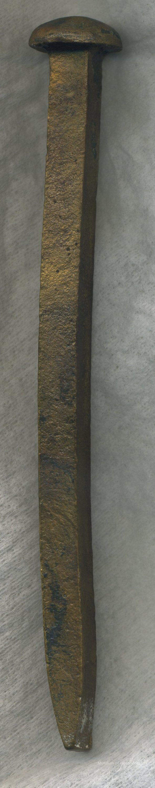 Iron ship spike once a part of the ship 'Harriett" which was deliberately beached by the Benicia Cannery along the waterfront near the end of first street.