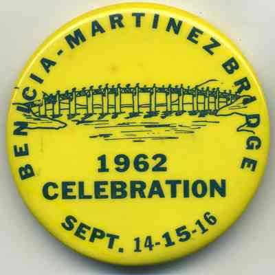 2-1/4" diameter, pin-on button commemorating the opening of the first Benicia Martinez Bridge;