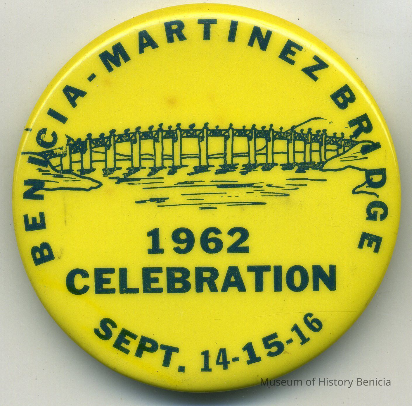 blue lettering on yellow background: Benicia-Martinez Bridge 1962 Celebration Sept. 14-15-16