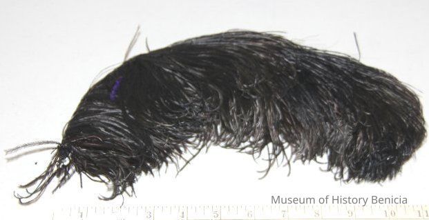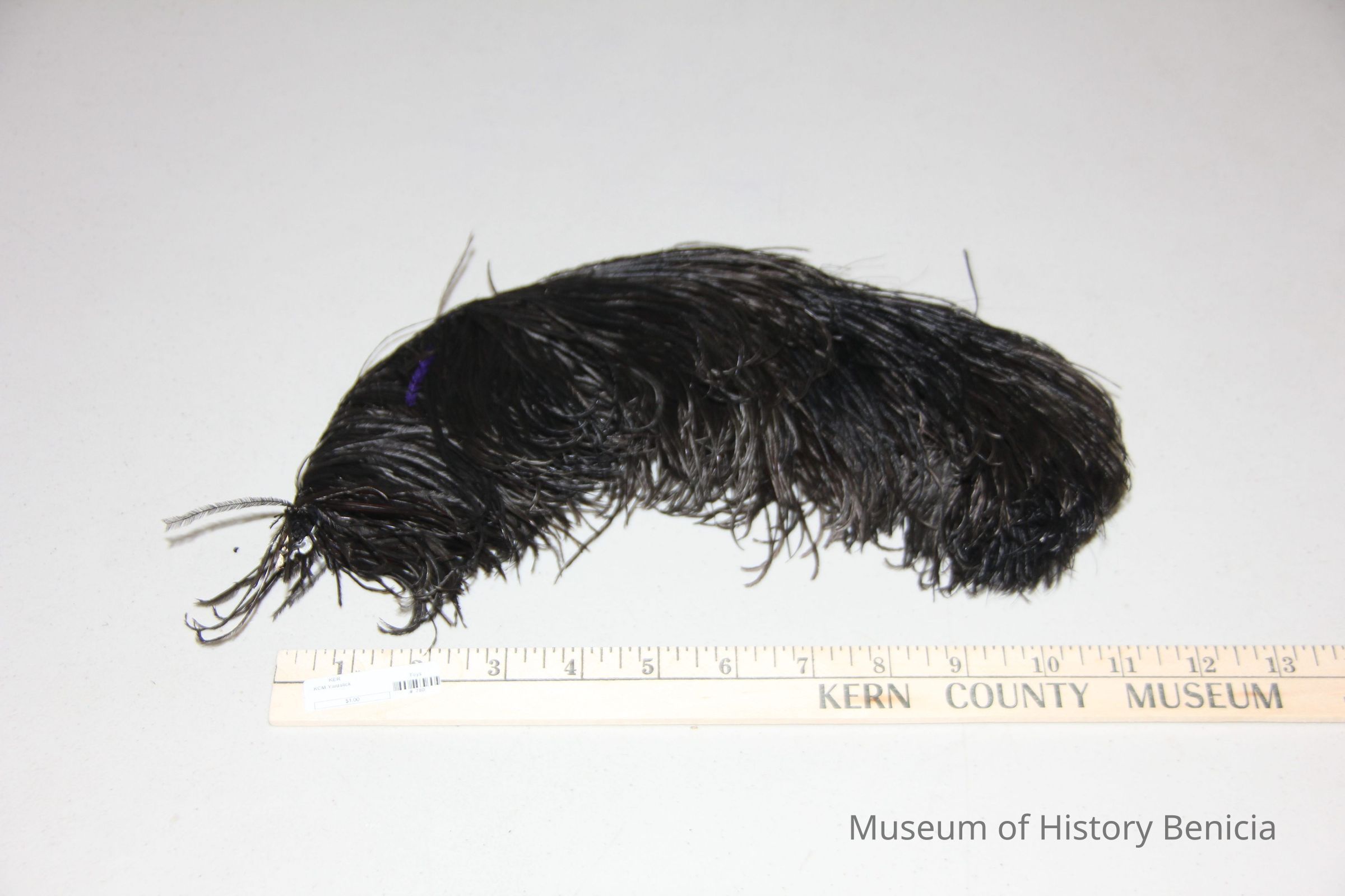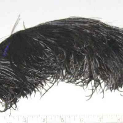 Large black feather tied at the bottom by a wire.