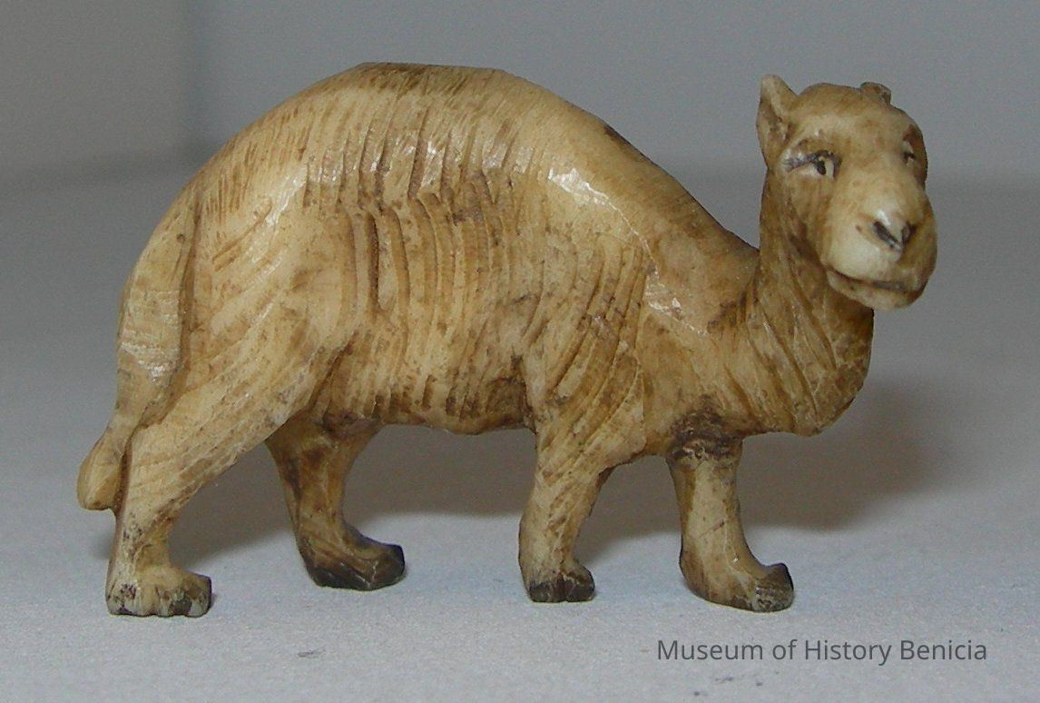 brown, painted ivory or bone carved standing camel - very small -"sagging hump"