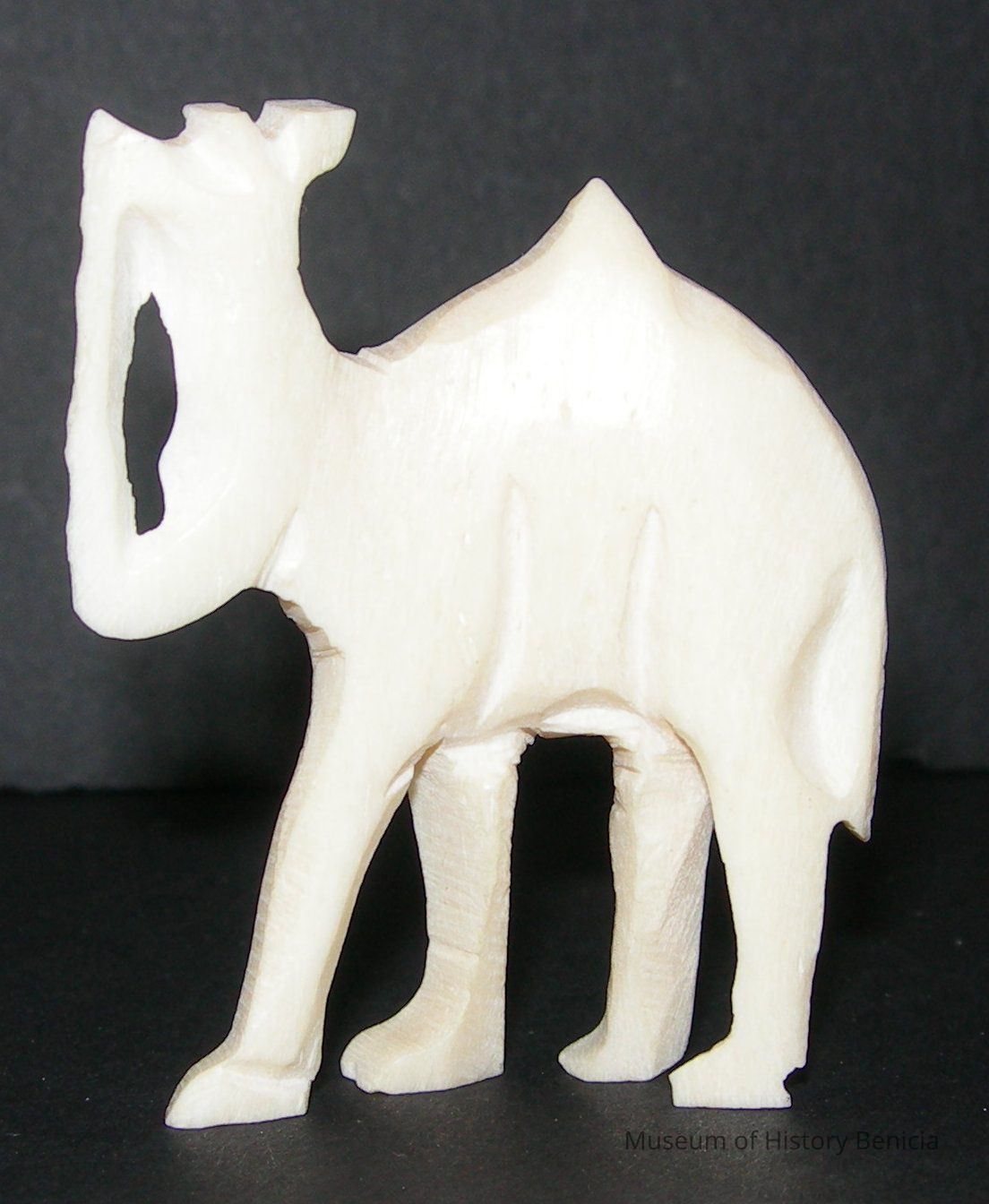 white carved bone or ivory standing camel - slightly curved body - details are flat