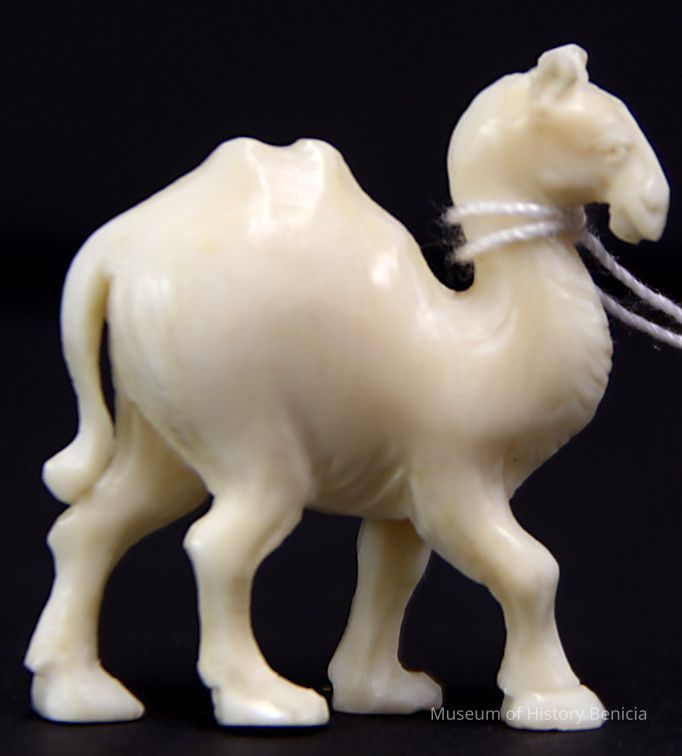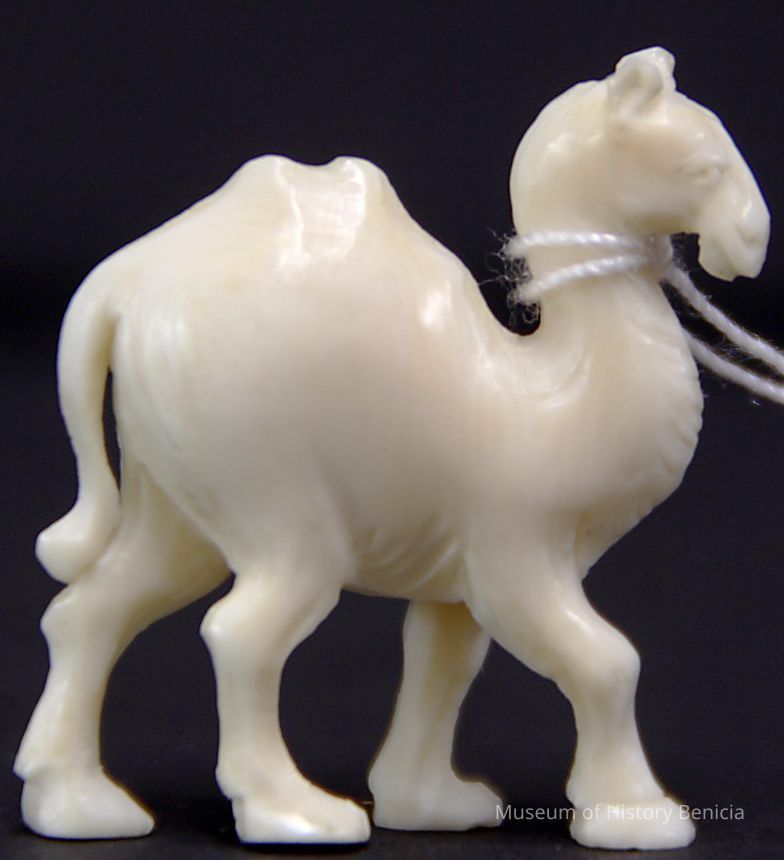 Camel ivory with no saddle or reins. The camel has two small "bumps" on top.