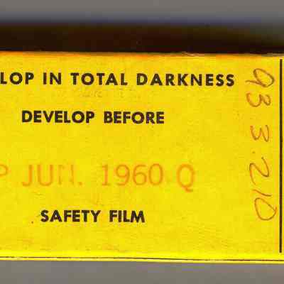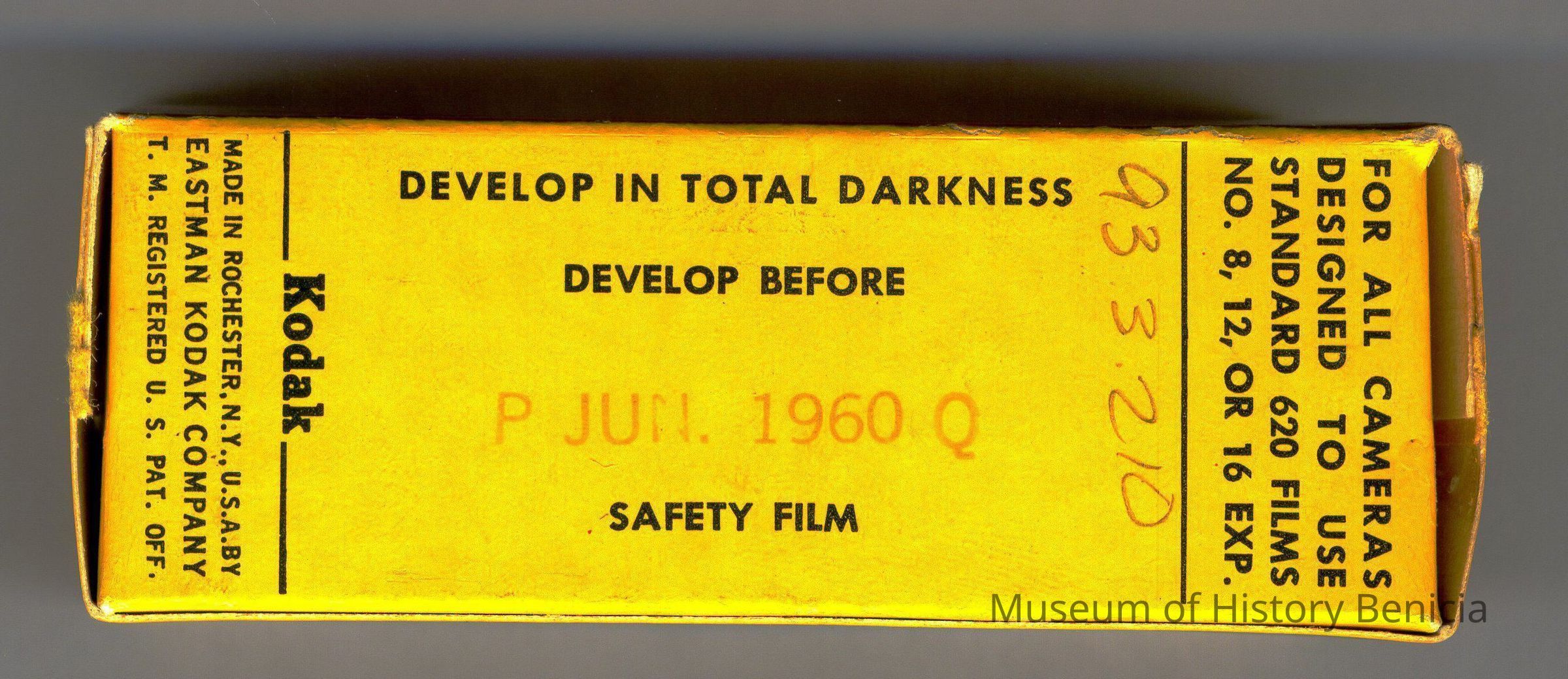 One box of Kodak Verichrome Pan Fast Panchromatic film. VP620 in. pen. Written on box: "DM/50"