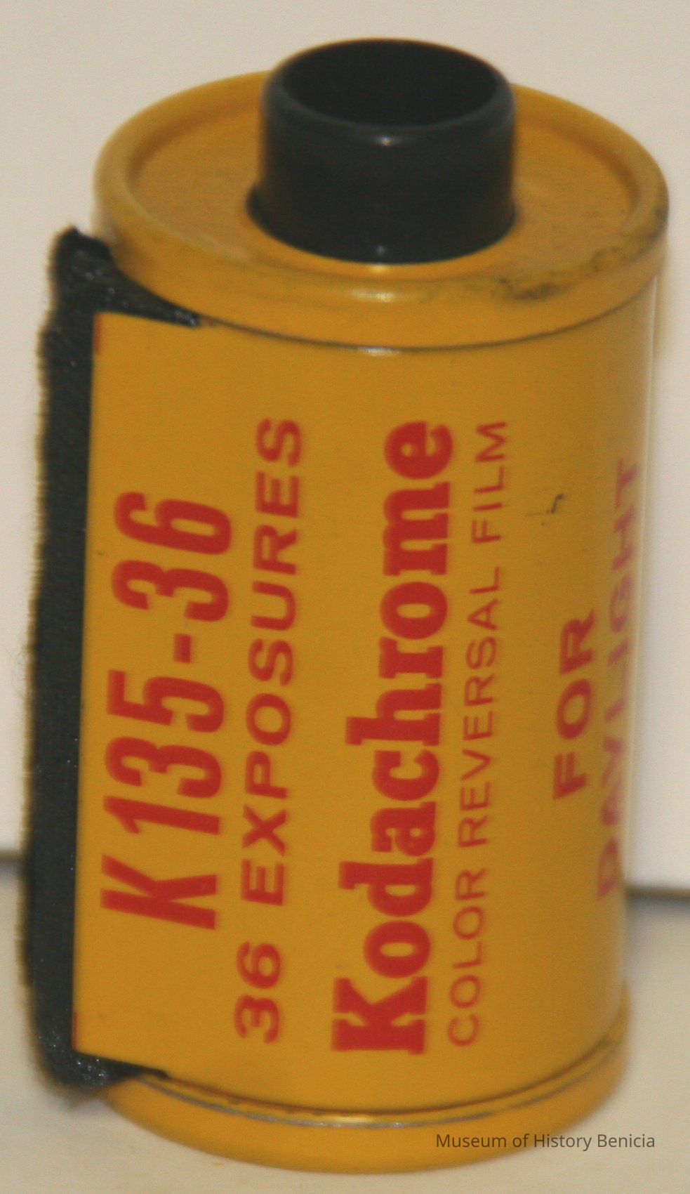 Kodachrome, K135-36. 36 exposures. Color reversal film for daylight. No box, just he metal film container. The colors are yellow and red.