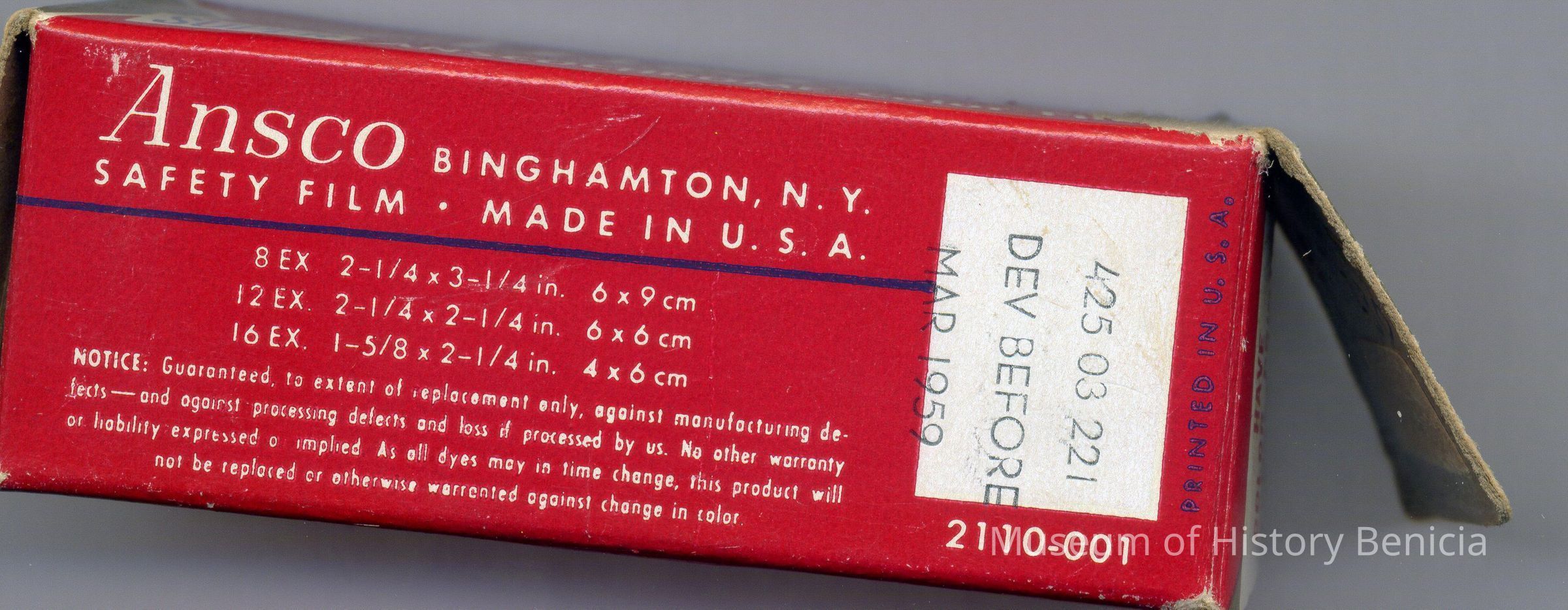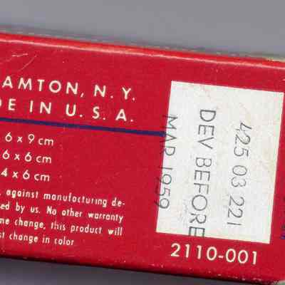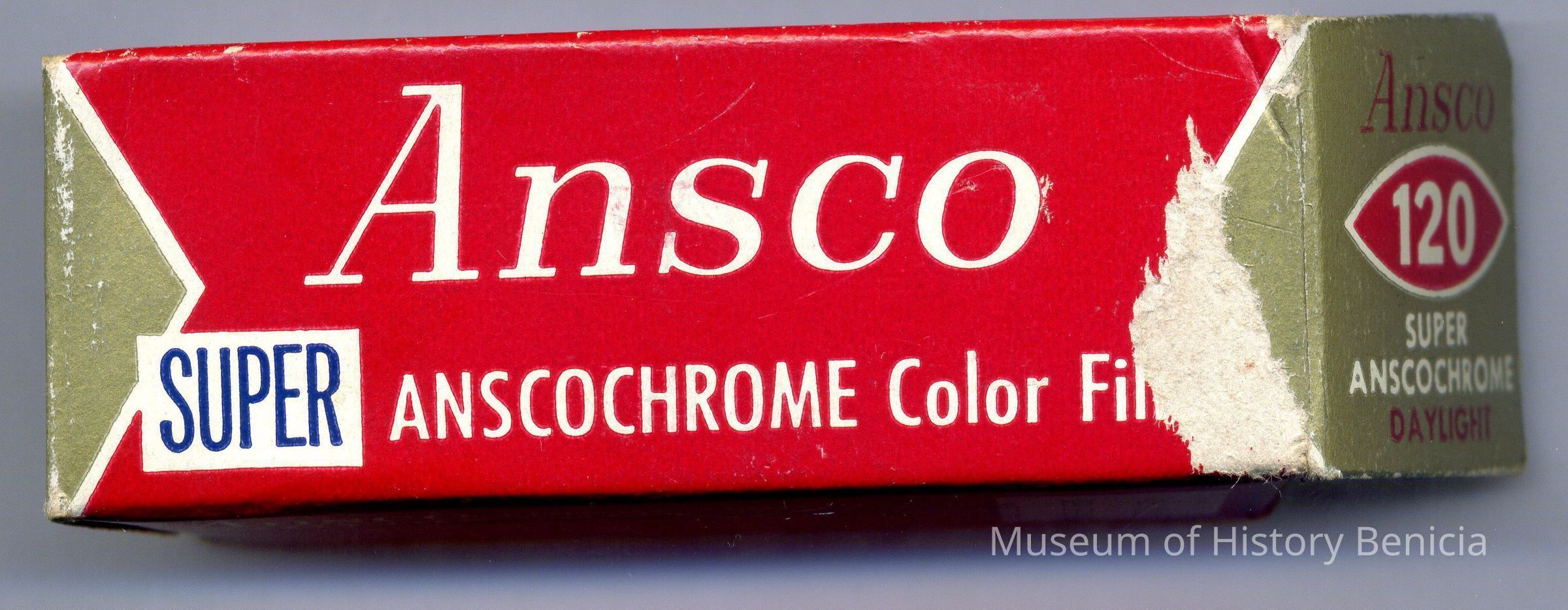 Ansco Super Anscochrome color film. 120 Super anscochrome daylight. Film inside, airtight foil wrapper. Box is opened at one end.