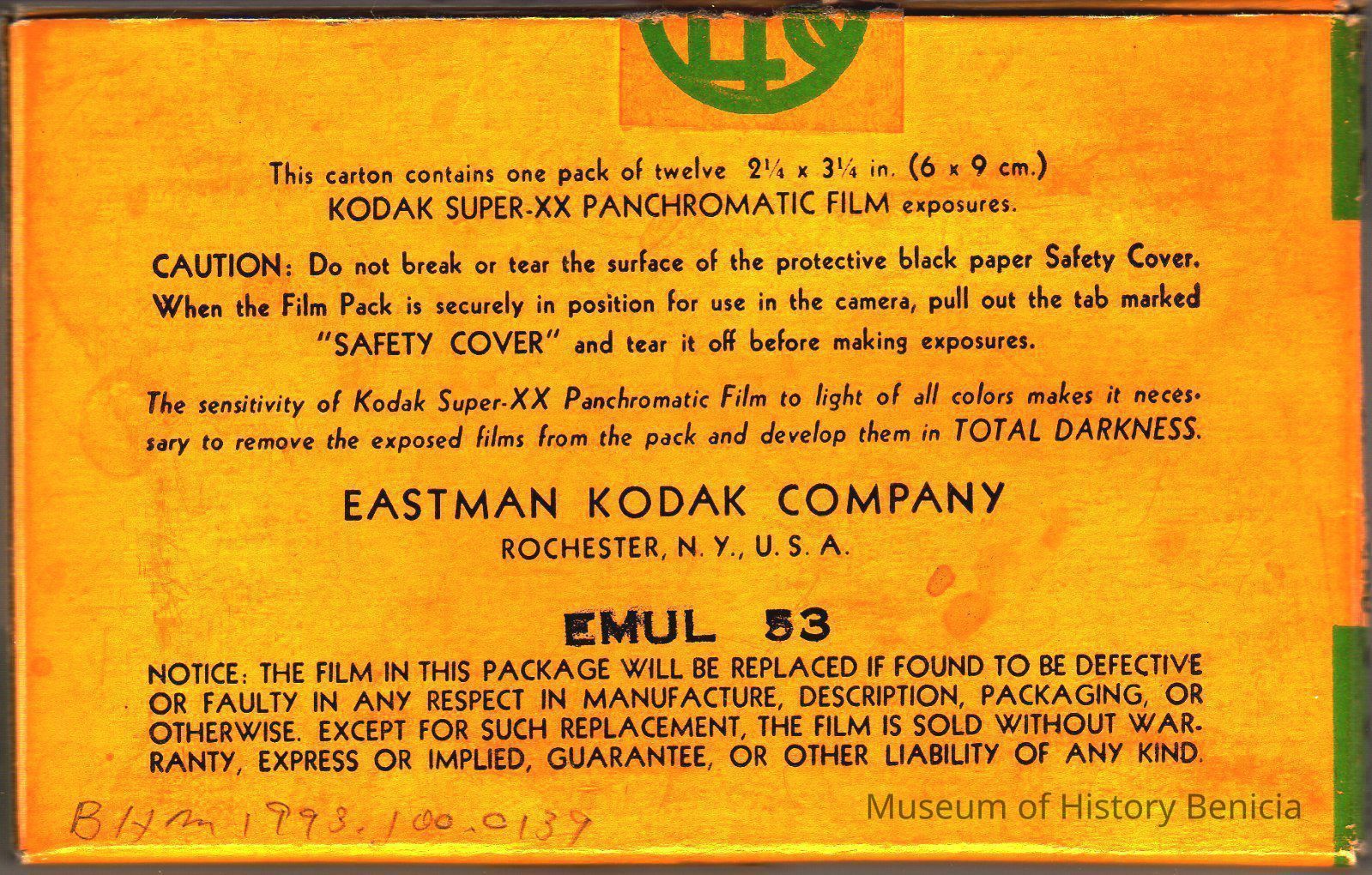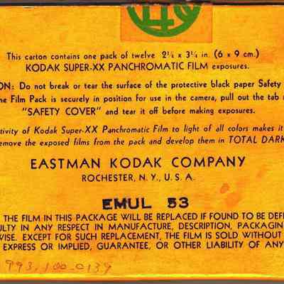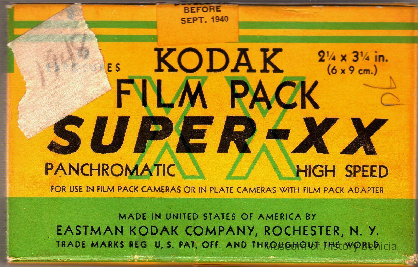 Kodak Film Pack Super-XX high speed panchormatic. 2.25 x 3.25. Expires 09/1940. The film appears to have been removed from the film pack. This item is now safe to store.Collection