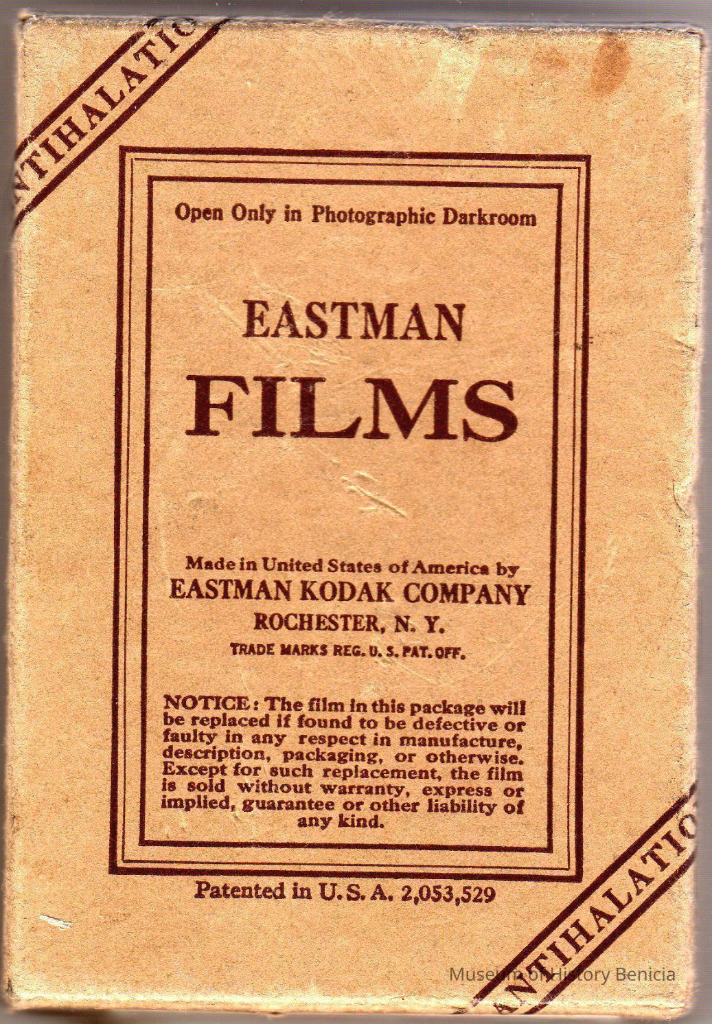 Eastman films. Antihalation type. Infra-Red safety film. The film has been removed from the film box due to safety concerns. This item is now safe to store.Collection