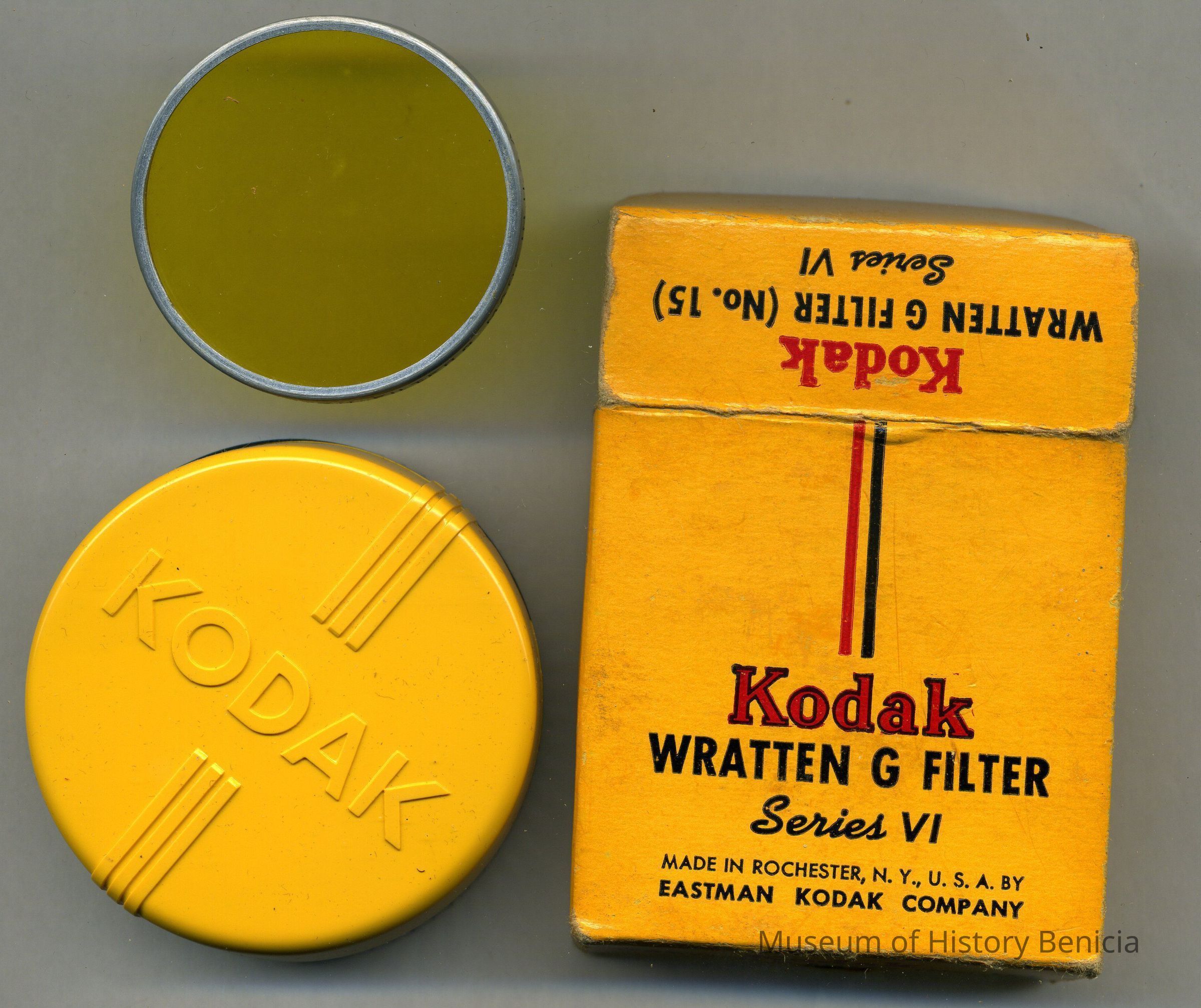 Wratten G Kodak filter series VI. It is yellow and about 1.5" in diameter.