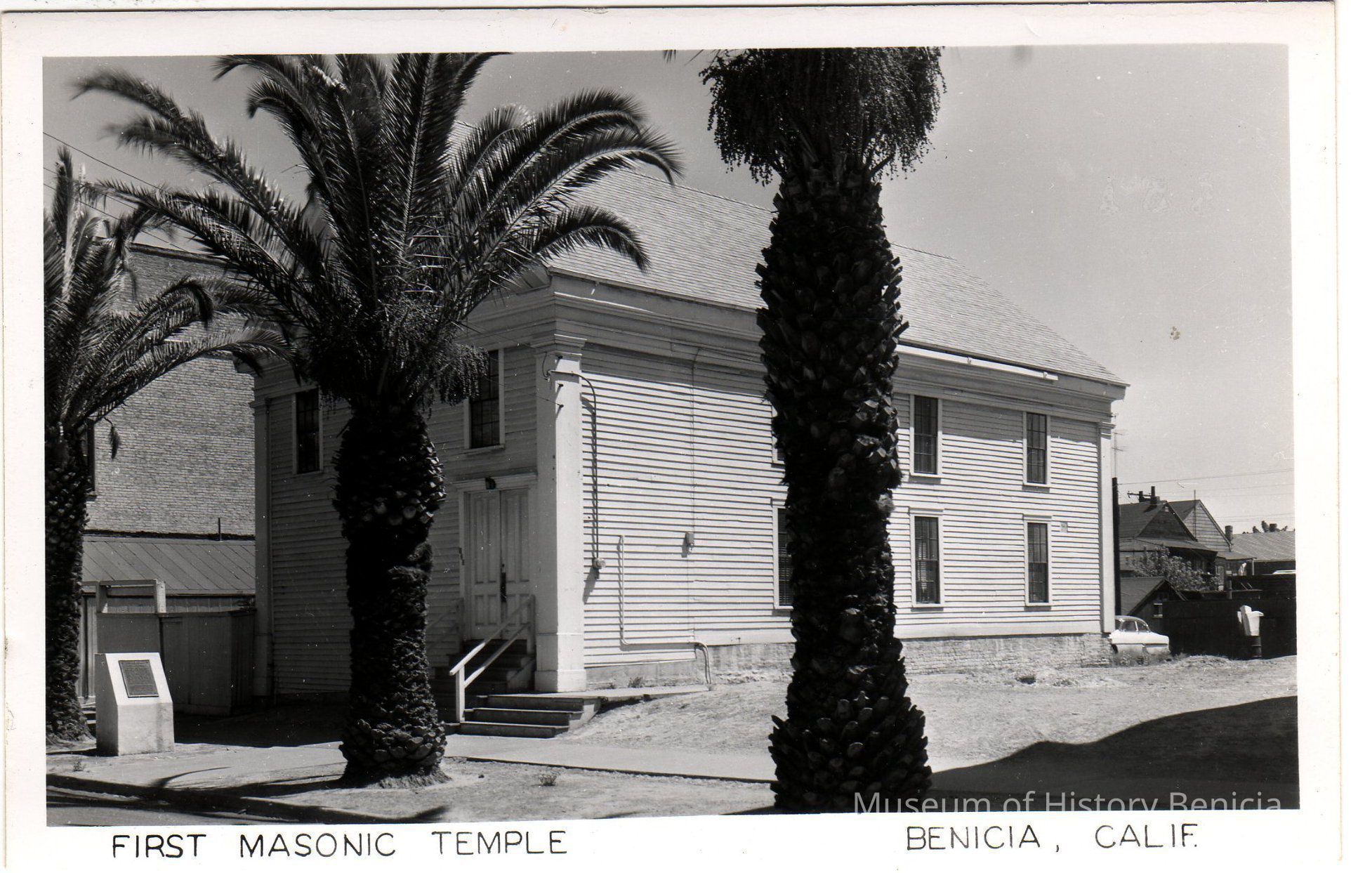 B/W image of First Masonic Temple, West J St., Benicia, Calif.