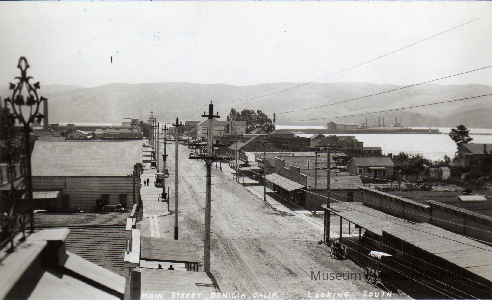 Original B/W photograph. Benicia Main Street looking south toward the straits.
