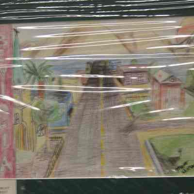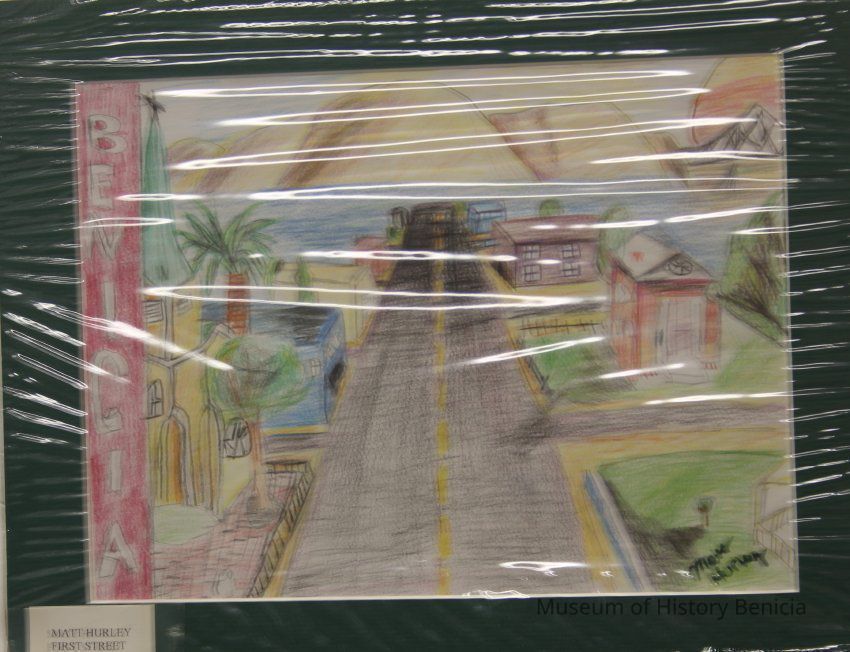 Artist rendering of First Street Benicia; drawing done in 1995 in colored pencils by Matt Hurley, a Benicia Middle School student matted and mounted on foamcoreCollection