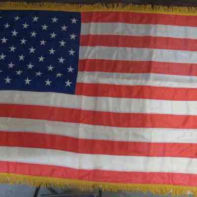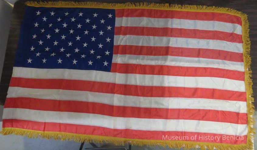Fifty Star United States flag with gold fringe. 35" x 60". Flag could be a ceremonial flag used for a special event in Benicia.