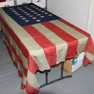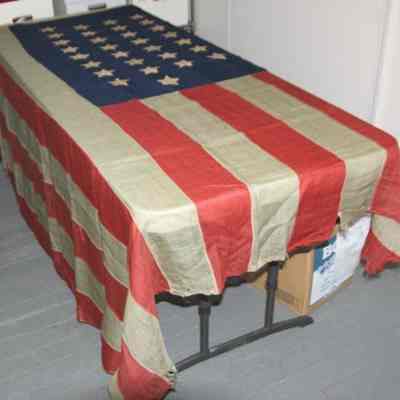 American flag with 45 stars. Donor reports flag made in 1889. It came from Brooklyn, NY and belonged to a New York "foot cop". The flag was willed to donor