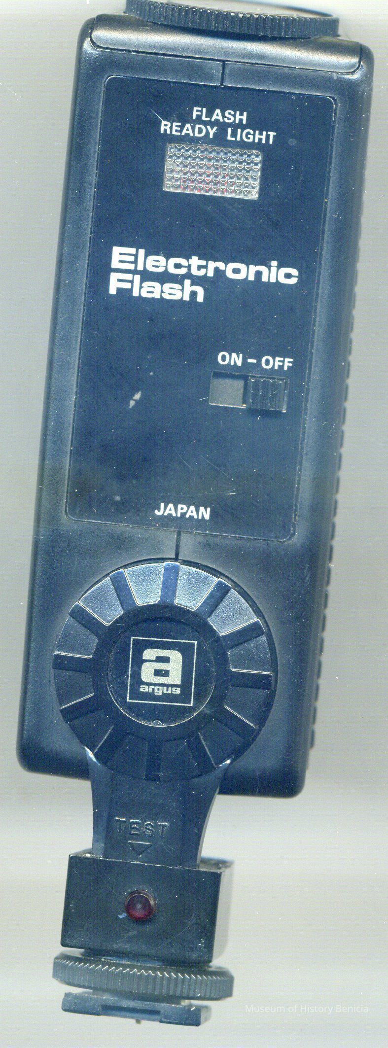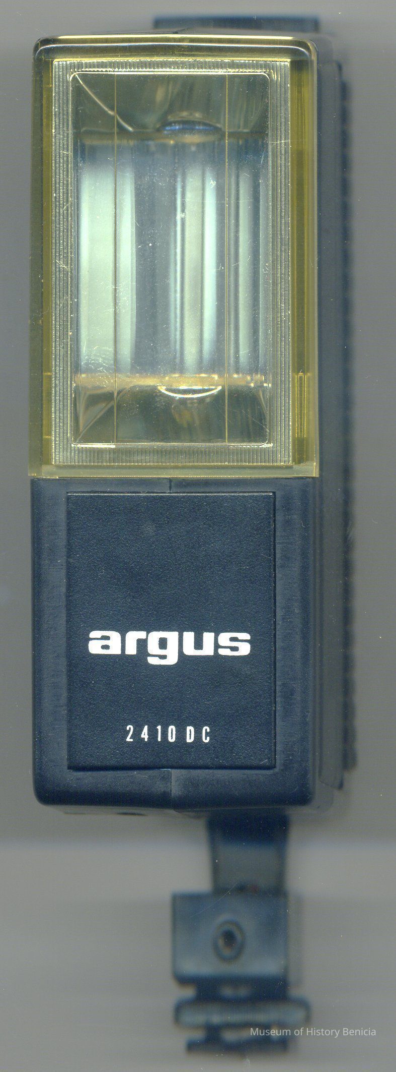 This is an Argus flash for mounting on a camera. It is model 2410DC. It is about 5 inches tall and 3.5 inches across and 1.75 inches thick. Not sure of the year produced or which cameras it was intended to be used with.Collection